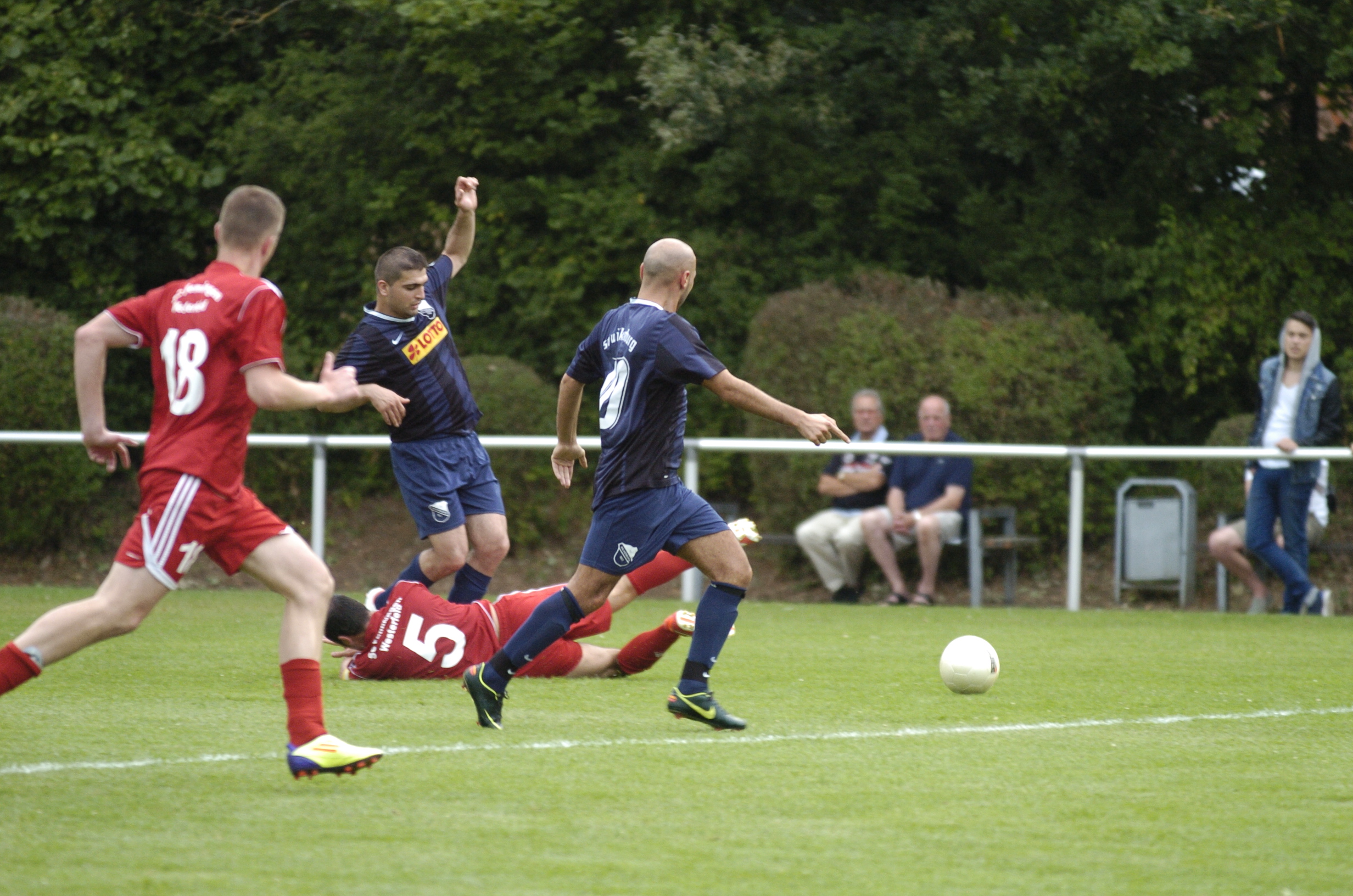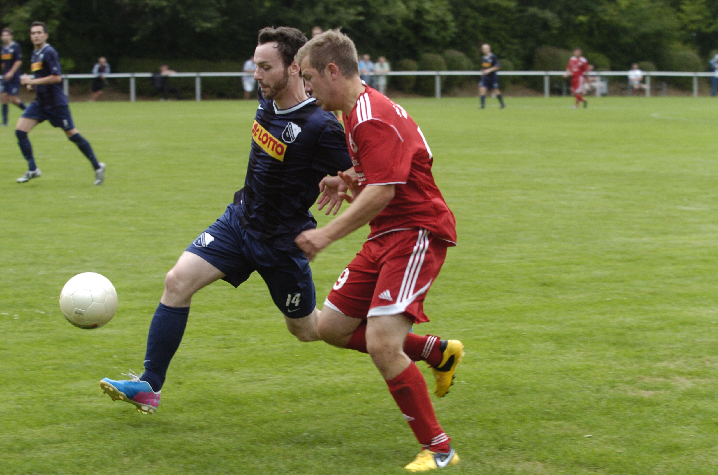Mehr Mühe als erwartet hatte der Bezirksligist SV Arnum mit dem letztjährigen Ligarivalen SV Eintracht Hiddestorf. Der Außenseiter ging überraschend durch einen nicht unhaltbar erscheinenenden 25-Meter-Schuss von Malte Saris in der 5. Minute mit 1:0 in Führung. In der 27. Minute bot sich der Eintracht sogar die Chance, auf 2:0 zu erhöhen, doch Jan Hendrik Garbe scheiterte mit seinem von Dennis Fromme verursachten Handelfmeter am gut reagierenden Arnumer Torwart Michael Engelhardt. In der Halbzeitpause schien Arnums Trainer Michael Opitz die richtigen Worte gefunden zu haben, denn bereits in der 47. Minute glich Daniel Mohr zum 1:1 aus. Doch die Spannung blieb: ausgerechnet der gerade erst zum Gegner gewechselte ehemalige Arnumer Kevin Herrmann brachte den Außenseiter in der 51. Minute erneut mit 2:1 in Führung. Mit Jan Hammer erzielte ein letztjähriger Hiddestorfer in der 62. Minute den 2:2-Ausgleichstreffer für seinen neuen Verein, ehe Nick Hieronymus in der 71. Minute den 3:2-Siegtreffer für die SV Arnum besorgte. "Die Hiddestorfer haben sich tapfer gewehrt und wer weiß, wie das Spiel ausgegangen wäre, wenn Jan Hendrik Garbe den Elfmeter verwandelt hätte," lobte Pressesprecher Martin Volkwein den künftigen Ligarivalen.