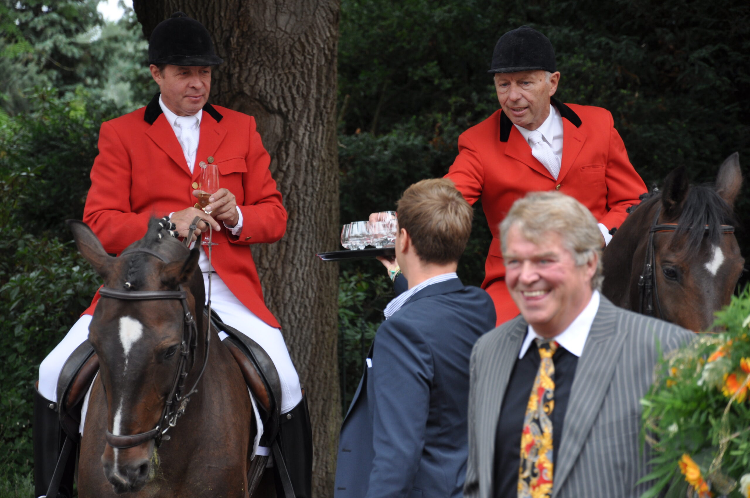 Und so wurden sie dann auch mit großem Applaus empfangen: Werner Hagedorn und seine Gattin Anne entstiegen der Kutsche, nachdem sie sich von dem Überraschungscoup erholt hatten, denn die beiden wussten ebenso wenig von diesem besonderen Auftakt wie alle anderen Gäste. Diskret und sorgsam hatten Peter Meisel vom HAGEDORN Eventcatering und Hinrich Kallis vom Reiterverein Wilkenburg die notwendigen Vorbereitungen getroffen, und so fuhren Kutsche und Reiter zur großen Überraschung des Goldenen Hochzeitspaares und der engsten Familienangehörigen zum Stelldichein auf dem Rittergut Emerke ein, um sie dann den Rest des Weges über eine gut halbstündige Fahrt auf das Rittergut Großgoltern zu begleiten.