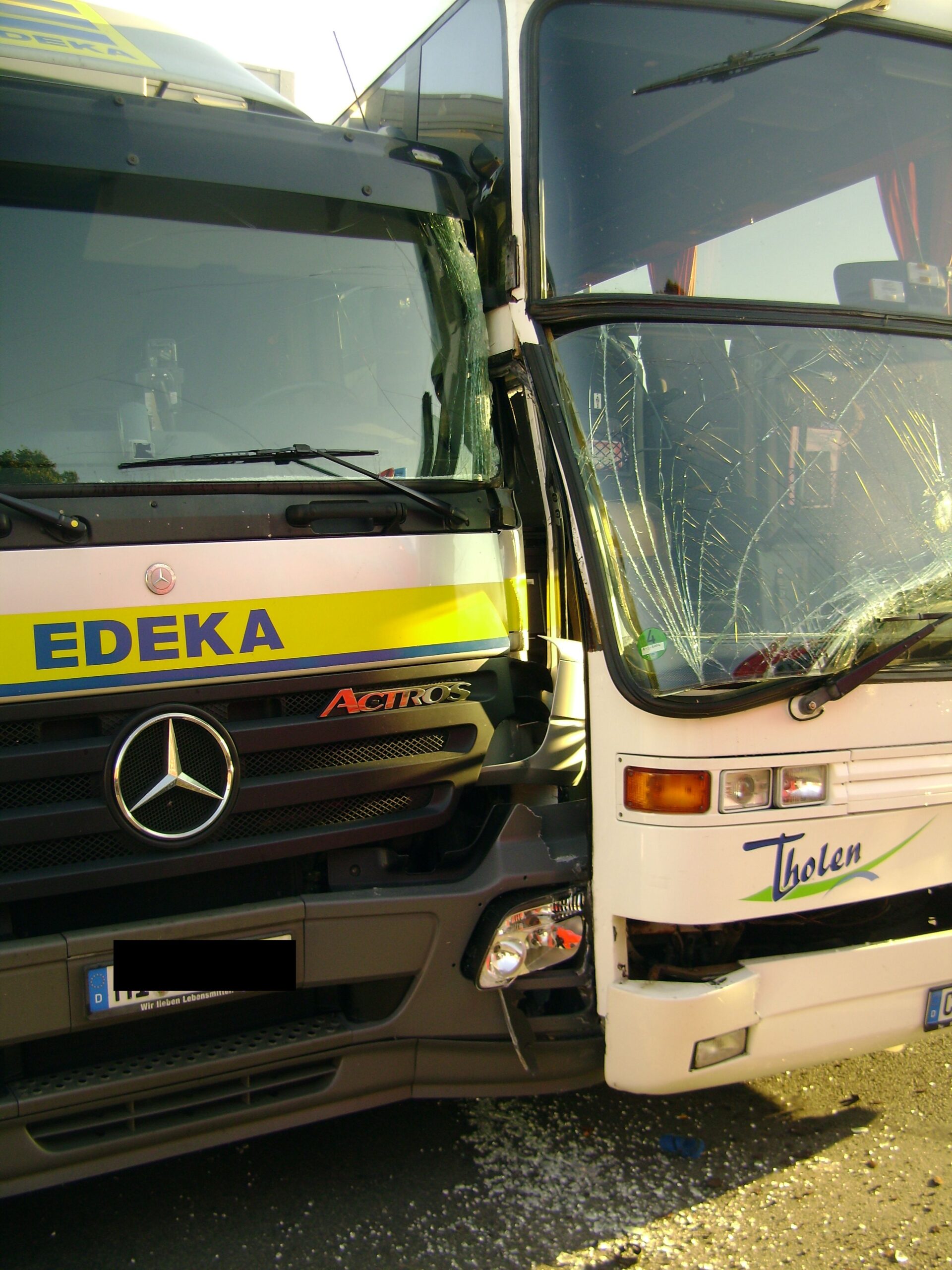 Der 45-jährige LKW-Fahrer als auch der 70-jährige Buslenker blieben unverletzt, im Bus verletzten zwei Mitreisende leicht. Vor Ort waren der Rettungshubschrauber (RTH von der MHH), zwei Rettungswagen und die Ortsfeuerwehren Ingeln-Oesselse, Gleidingen und Laatzen mit über 40 Einsatzkräften. Von der Polizei kamen noch mehrere Streifenwagen und der Verkehrsunfalldienst (VUD) dazu. Es entstand Sachschaden in Höhe von etwa 20 000 Euro.