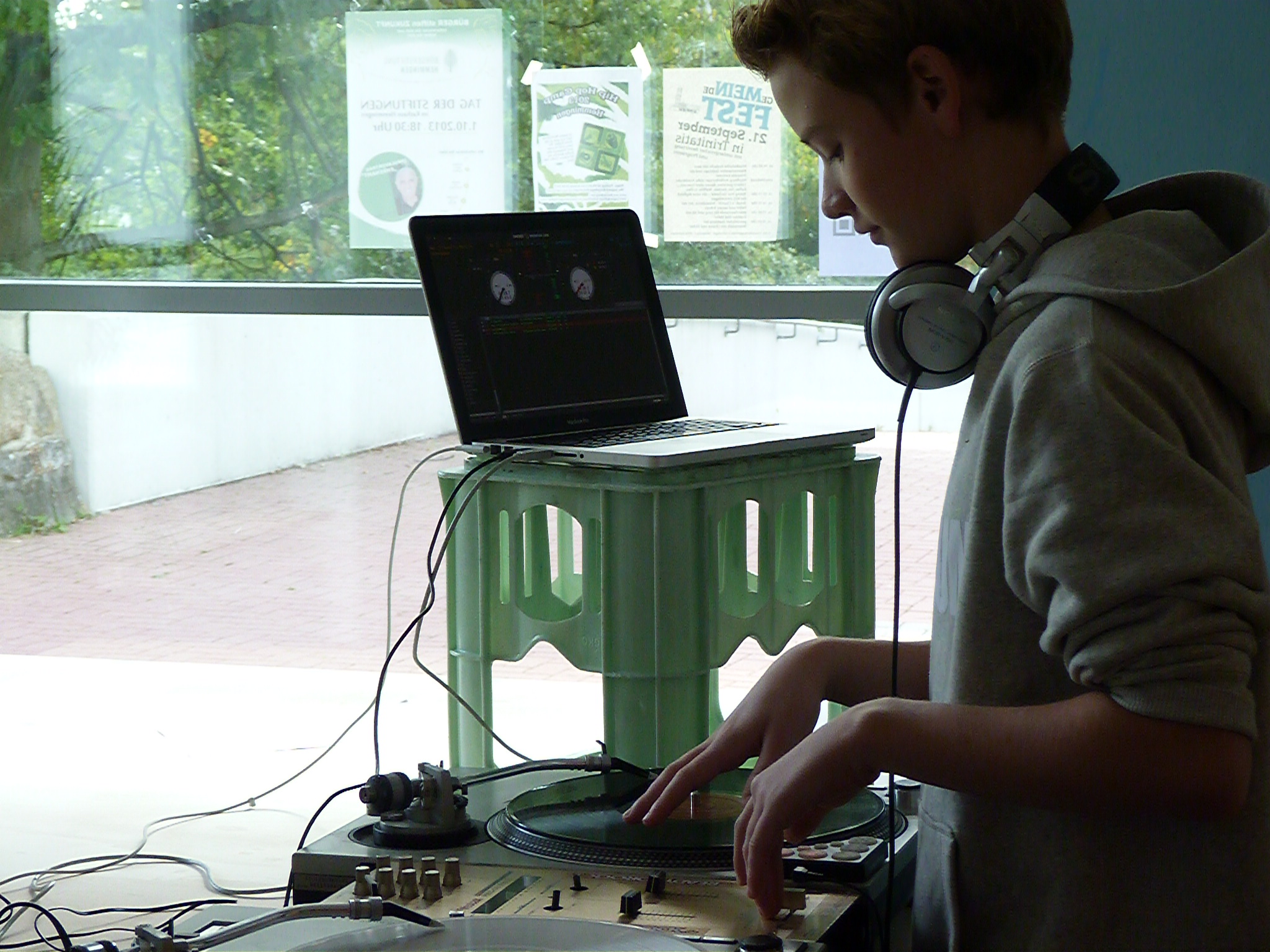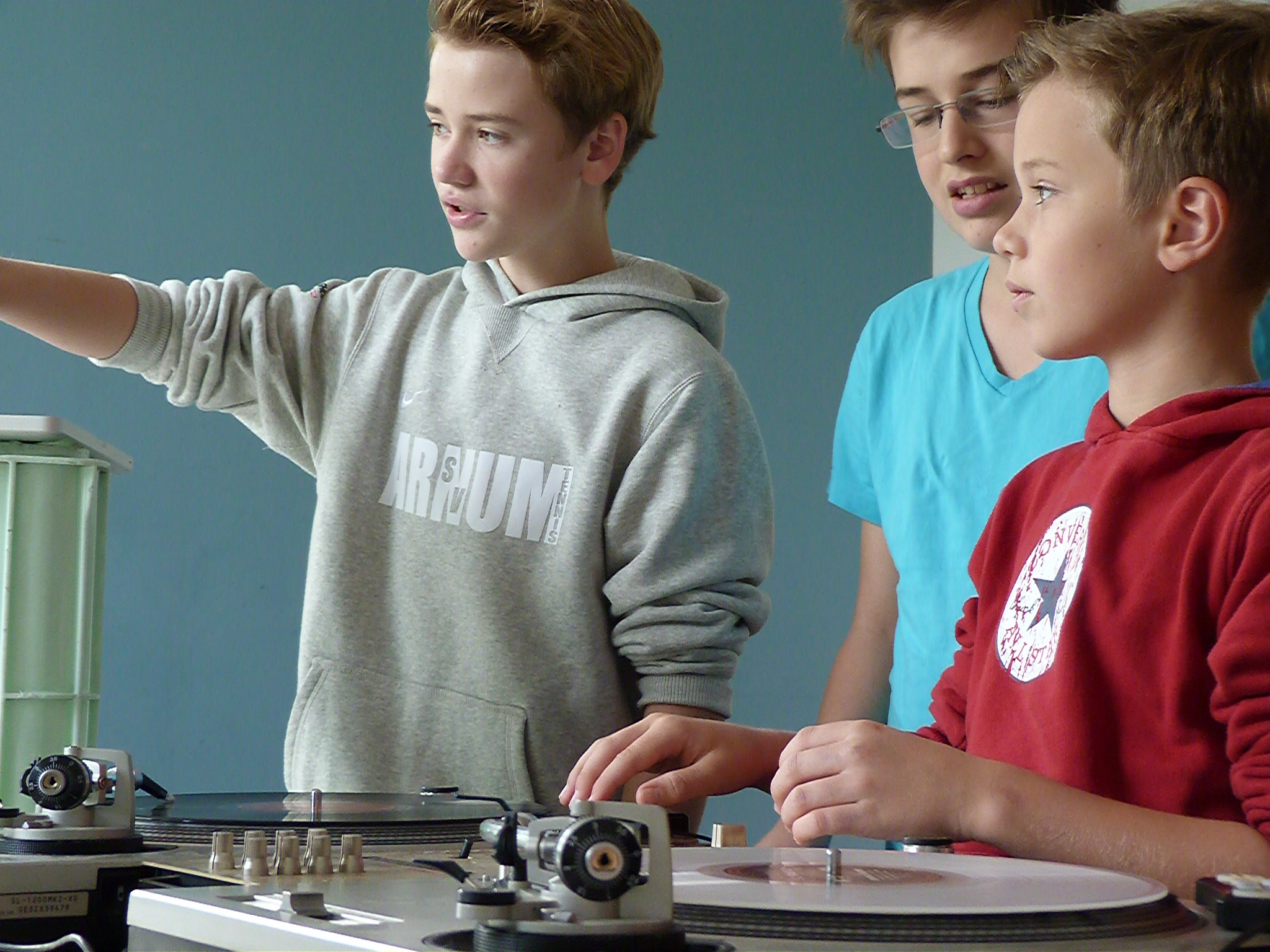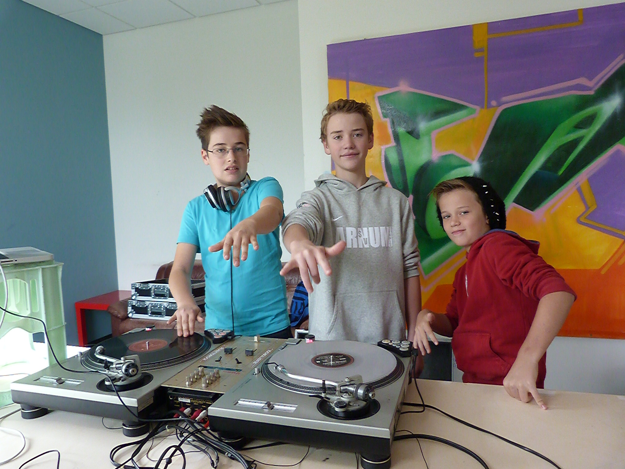 Die Killas lernen von den B-Boys Backspin, Flow und den richtigen Bounce. Sie sind alle Homies und bleiben das auch nach dem fetten Battle. Wer das nicht versteht, gehört wohl nicht zu den 34 Schülern, die noch bis morgen im Jugend-Kultur-Haus in den Genuss einer professionellen Einweisung in die ehemalige Subkultur des Hip-Hop kommen.. Das Hip-Hop-Camp, veranstaltet von der Hemminger Jugendpflege, ist für die Teilnehmer mehr als eine Spaßveranstaltung – obwohl der Spaß natürlich großgeschrieben wird. Es geht um die vier Elemente des Hip-Hop: Tanz, Gesang, Zeichnen und Musik auflegen, in der Szene Breakdance, Rap, Graffiti und DJing genannt. In einem Raum sind sind zwei Plattenspieler aufgebaut, an denen sich Ivo (14), Lennart (12) und Karl (10) an der Kunst des Mischens versuchen. Angeleitet werden sie von DJ KidCut. Marco, wie er im richtigen Leben heißt, gibt wertvolle Tipps zum richtigen Groove. "Das war jetzt zu schnell, mach noch mal und starte etwas früher", erklärt er Lennart. Der seufzt und versucht nochmal, aus zwei vorgegebenen Musikstücken einen Mix hinzukriegen. "Schon viel besser", lobt Marco. Lennart strahlt.