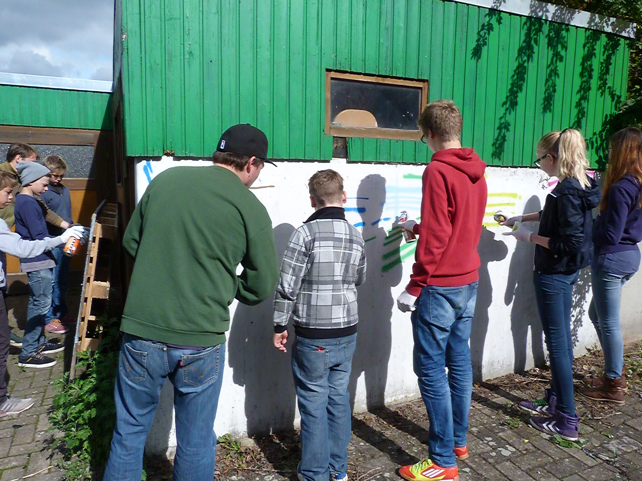 Zum Abschluss soll morgen die Kluge-Villa, das Haus vorne an der KGS, mit einem gemeinsamen Motiv verziert werden. "Wir wollten den Kids die Hip-Hop-Kultur etwas näher bringen", sagte André Döpke von der Jugendpflege. Dabei beschränkte er sich nicht auf die reine Umsetzung von Techniken, es gab auch Unterricht über Ursprung, soziale Bedeutung und Entwicklung der Ghetto-Bewegung. Die Begeisterung der Teilnehmer lässt vermuten, dass "Homie" Döpke alles richtig gemacht hat.