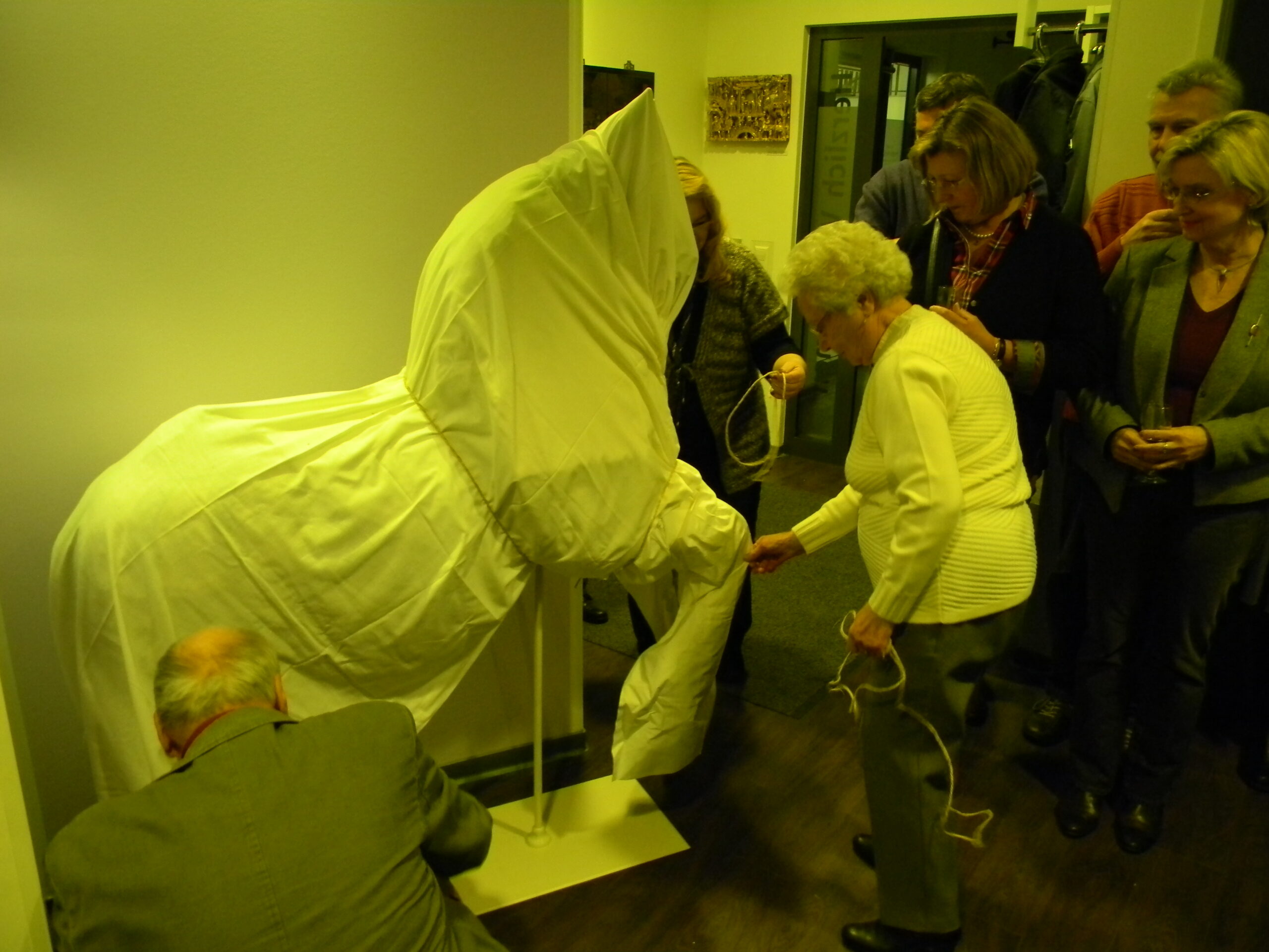 Einige Tage danach ist das Pferd auf ein Gestell montiert und heute enthüllt worden. "Das war alles nicht ganz einfach", räumt Dr. Hagen Krüger ein. Doch nun stehe es in der Praxis und sei ein Blickfang für die Patienten. Und noch etwas: das "Krümelmonster" darf nicht fehlen. Zur Erinnerung: der damalige Keks-Entführer nannte sich selbst Krümelmonster. Krüger setzte die blaue Puppe auf den Kopf des Pferdes.