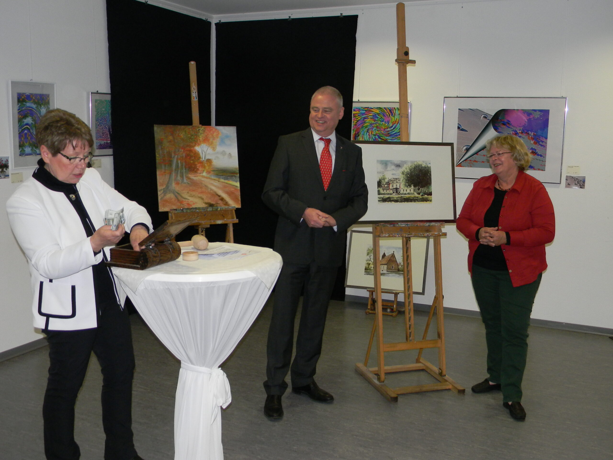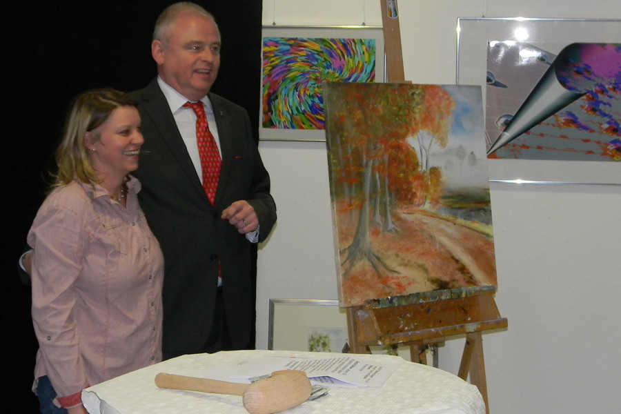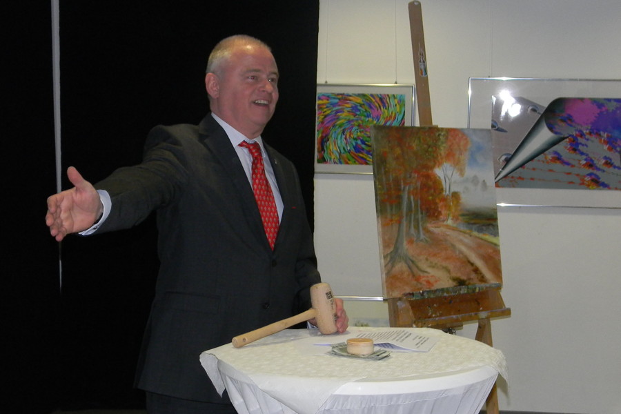 Thomas Prinz, Bürgermeister der Stadt Laatzen, brachte die drei Werke sprichwörtlich unter den Hammer. Renate Bartel aus Grasdorf, Marion Bode-Pletsch und Klaus-Dieter Meyer, beide aus Rethen, waren am Ende die glücklichen Ersteigerer. Es mussten stets fünf Euro in den Topf geworfen werden, bis der Hammerschlag beim dritten Aufruf (..zum ersten, zum zweiten….) den Vorgang beendete.