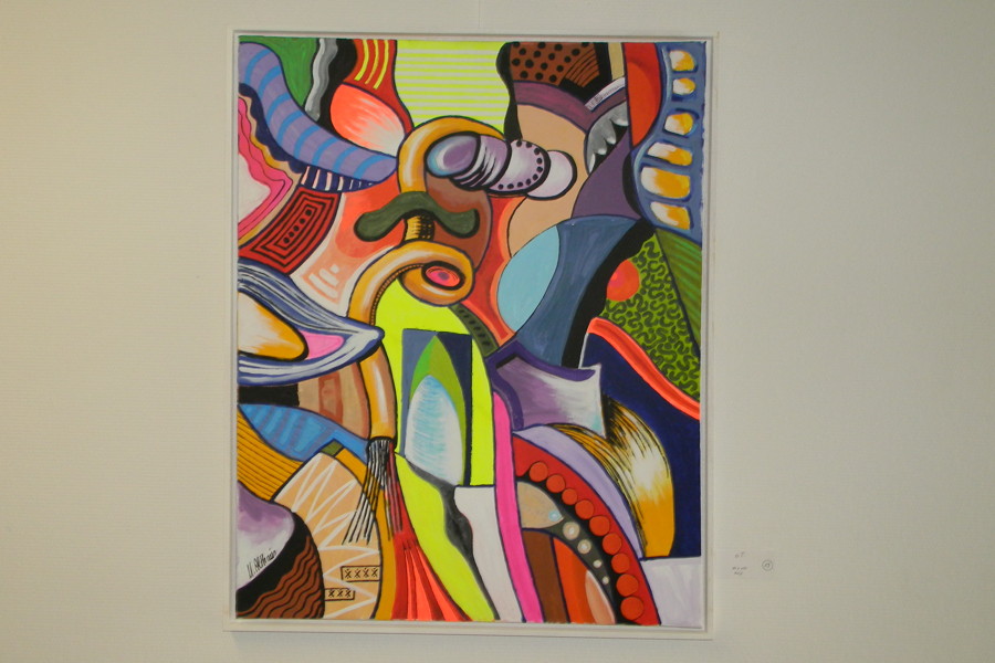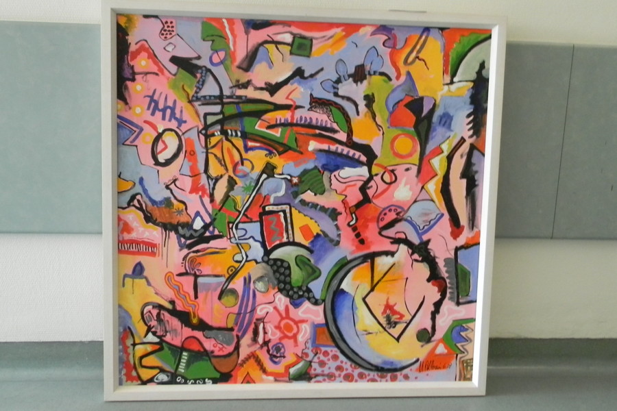 Ulrich Althaus malt gern farbig, und weil das so ist, hat ihn der Förderverein des Klinikums Agnes Karll für eine Ausstellung gewinnen können. Sonnabend wird sie eröffnet.. "Die Patienten und Besucher sollen durch die knalligen Farben froh gestimmt werden", sagte heute Mittag Ulrich Althaus. Er war gerade dabei, seine etwa 20 Bilder – in Oel und Acryl – in der 1. Etage an die Wände des Flures zu bringen.