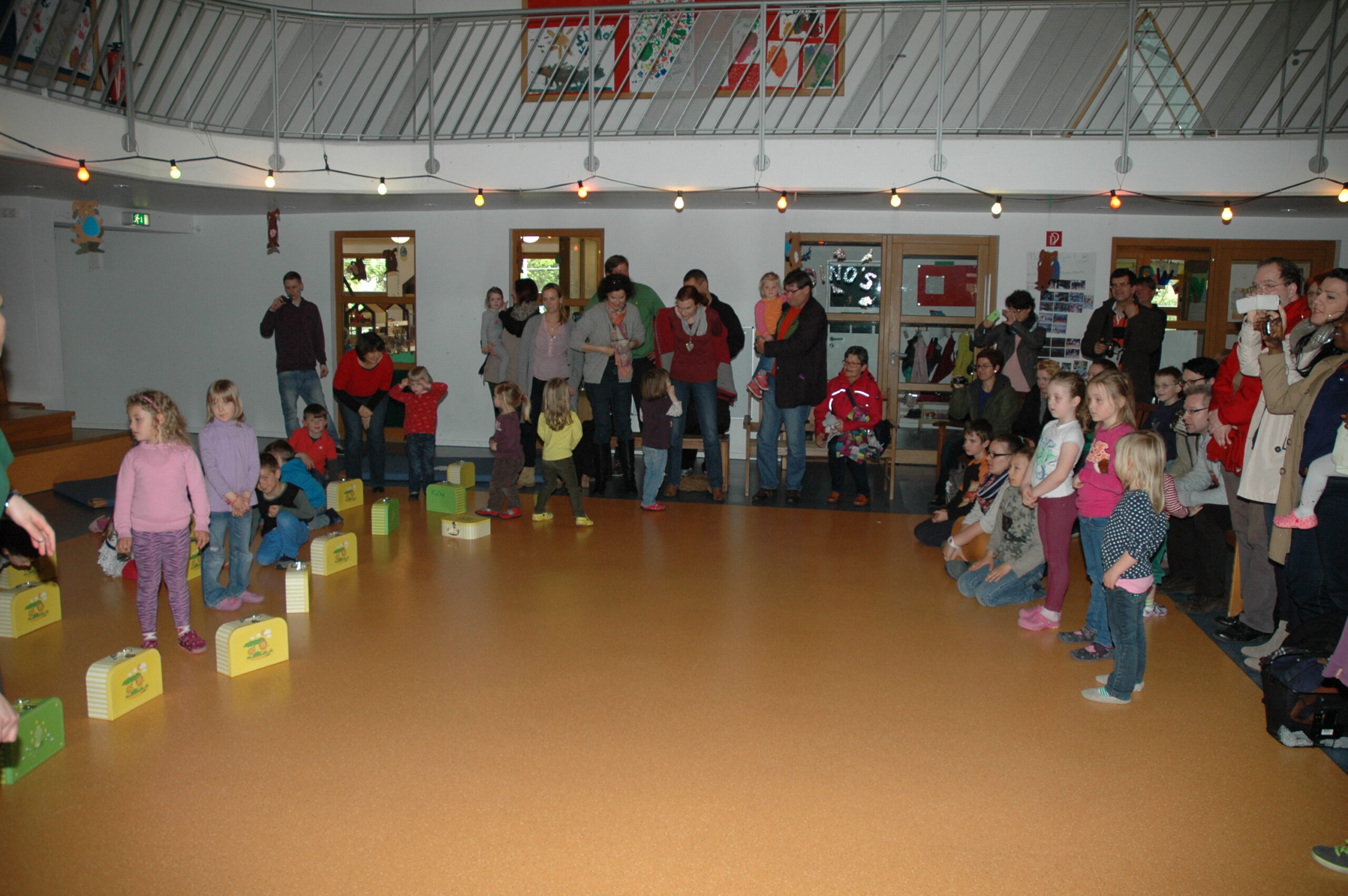 Übungen mit Körper und Tempo leiteten die Vorbereitung der heutigen Abschlusspräsentation ein. Die Kinder präsentierten deabei einen Ausschnitt der Ergebnisse und das ein oder andere Märchen wurde nachgestellt.