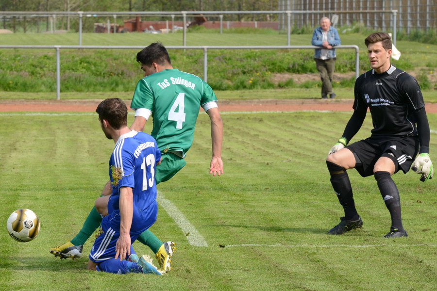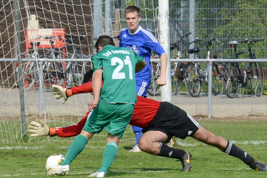 Die drei Treffer von Christian Eilers könnten in jeden Fußball-Lehrfilm aufgenommen werden: drei lange Bälle aus der eigenen Hälfte – zwei über rechts, einer über links – und der pfeilschnelle TSVer lief der aufgerückten TuS-Abwehr auf und davon und verwandelte im Stile eines Könners.