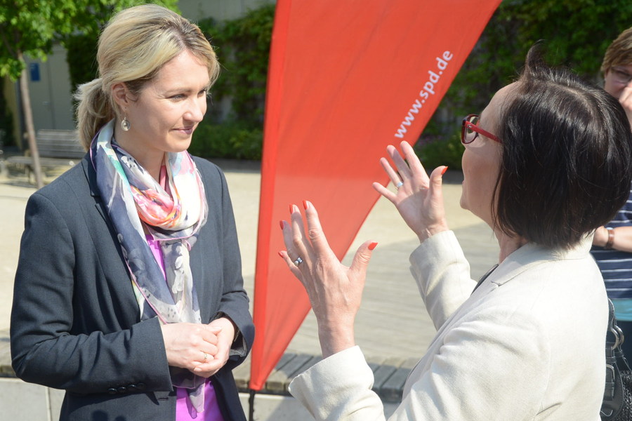 Auf dem Leine Center-Vorplatz in Laatzen hatte die SPD ihren Wahlkampfstand aufgebaut, und Manuela Schwesing kam nicht allein mit Genossen, sondern auch mit Passanten ins Gespräch. So sagte eine Frau: "Ich muss Sie einmal loben. Was ich von Ihnen im Fernsehen gehört habe, gefällt mir gut. Sie machen sich für Kinder stark." Und gerade das sein im reichen Deutschland nötig.
