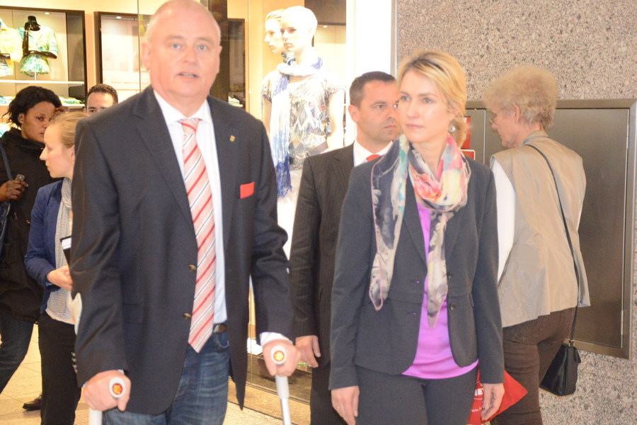 Nachdem die Ministerin den Wahlkampfstand verlassen hat, ging es einmal längst durch das Leine Center zum Familienzentrum am Marktplatz. Auf dem Weg dorthin erläuterte Prinz ihr einiges über das Leine Center und über die Stadt Laatzen. Und der Bürgermeisterkandidat der SPD versäumte nicht, seiner prominenten Genossin eine "Prinzenrolle" von de Beukelaer mit auf die Fahrt nach Bremerhaven in die Hand zu drücken.