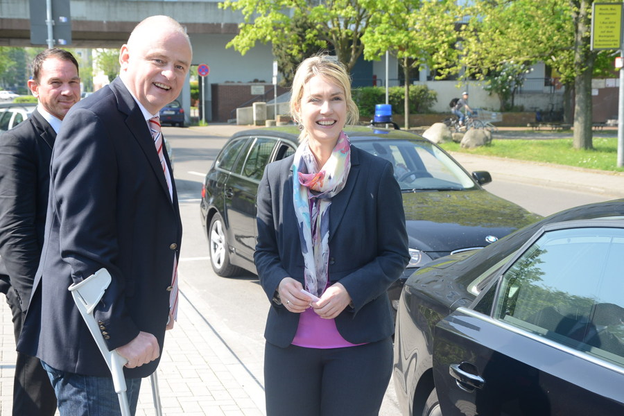 "Deswegen bin ich heute hier", sagte die Ministerin. Sie wolle Thomas Prinz unterstützen, "damit Sie hier in Laatzen weiter einen SPD-Bürgermeister haben, der das umsetzen kann."