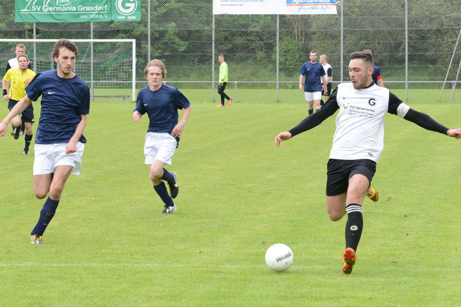 Das 0:1 (17.) durch Bastian Puschmann glich Riadh Amin Awdi wenig später aus (21.). Das 1:2 (51.) geht auf das Konto von Ruben Krauspe, aber zehn Minutern später egalisierte Tim Engelhard. Die Germania erhöhte den Druck, drängte auf das nächste Tor. Die beste Möglichkeit dazu bot sich Riadh Amin Awdi: er hatte den MTV-Torwart bereits ausgespielt, aber sein Schuss aus leicht spitzen Winkel landete nur am kurzen Torpfosten – das war fünf Minuten vor dem Schlusspfiff.