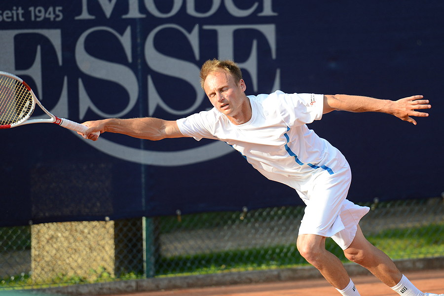 Marc Lembach fühlte sich nach seinem schweren Halbfinalspiel am Vormittag gegen den Braunschweiger Daniel Höppner (6:4, 6:7 und 7:5) körperlich ausgelaugt, setzte daher alles auf eine Karte: Risiko. Diese Rechnung ist aufgegangen.