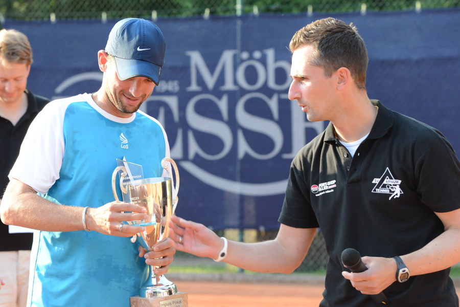 Das ist schon eine kleine Überraschung – und auch wieder nicht. Denn Marc Lambach hat bei seiner sechsten Turnierteilnahme in Arnum heute zum fünften Mal gewonnen. Als Favorit war aber der Arnumer Pavel Jakunin ins Finale gegangen.. "Es tut mir leid, Pavel." Das sagte im Rahmen der Siegerehrung der Herren 30 Marc Lembach (Kasseler TC). "Ich habe draufgehauen und immer getroffen." Das erklärt den Erfolg des Spielers aus Kassel. 6:3 und 6:1 fertige Lembach seinen Gegner ab.