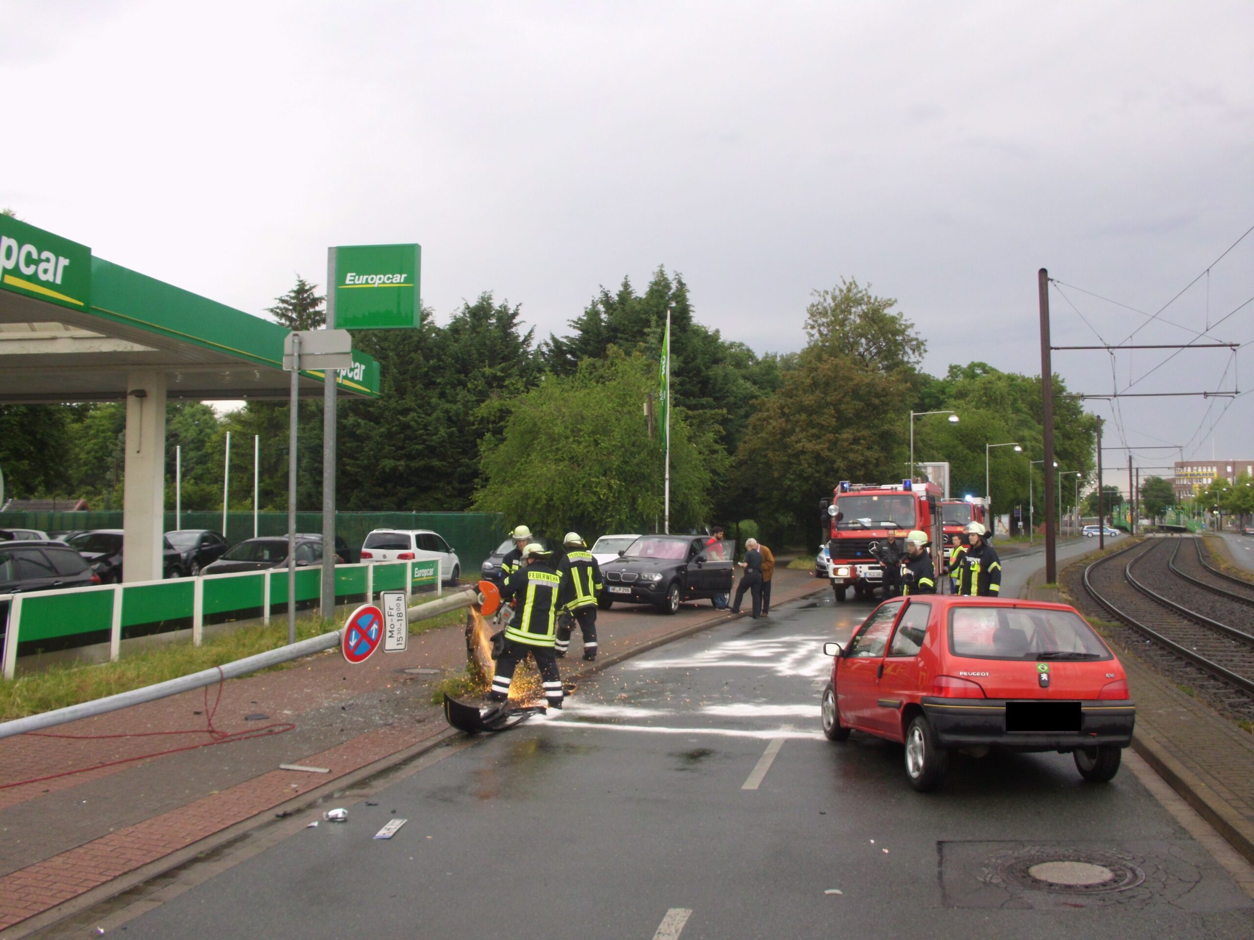 Heute morgen um 7.31 Uhr verlor ein Peugeot-Fahrer auf der Hildesheimer Straße die Kontrolle über seinen roten Kleinwagen und stieß dabei gegen eine Straßenlaterne. Die Ortsfeuerwehr streute zwei große Säcke Bindemittel auf ausgelaufene Betriebsstoffe und "flexte" die Straßenlaterne ab. Die Unfallstelle wurde danach abgesichert.