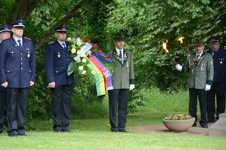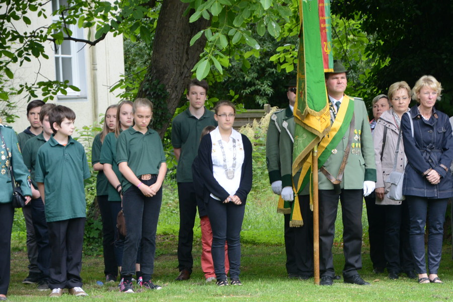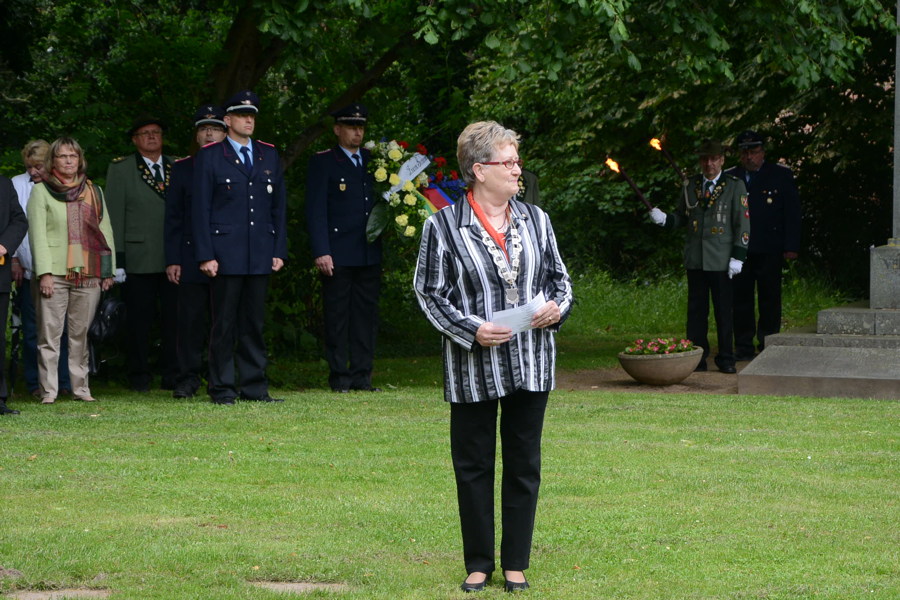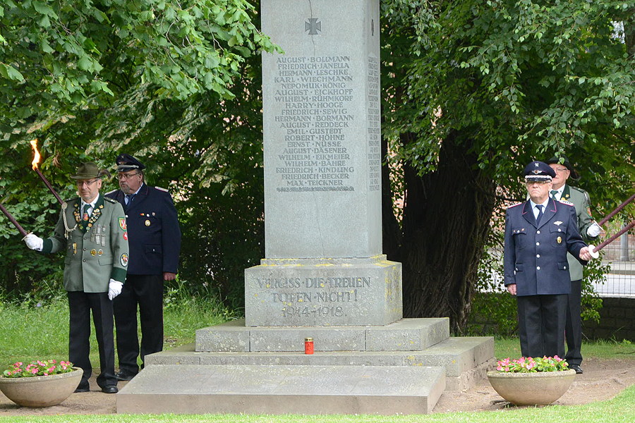 Zum Auftakt eines jeden Schützenfestes in Rethen steht die Kranzniederlegung am Ehrenmal an der Thiestraße – so auch 2014. In ihrer Ansprache sagte Ortsbürgermeisterin Helga Büschking, "dass immer wieder darauf hingeweisen werden muss, was sich zwischen 1933 und 1945 in Deutschland abgespielt hat. Als Mahnung für die heutige und zukünftige Generation." Zum Abschluss der Gedenkfeier spielte der Musikzug der Freiwilligen Feuerwehr der Stadt Laatzen die deutsche Nationalhymne.