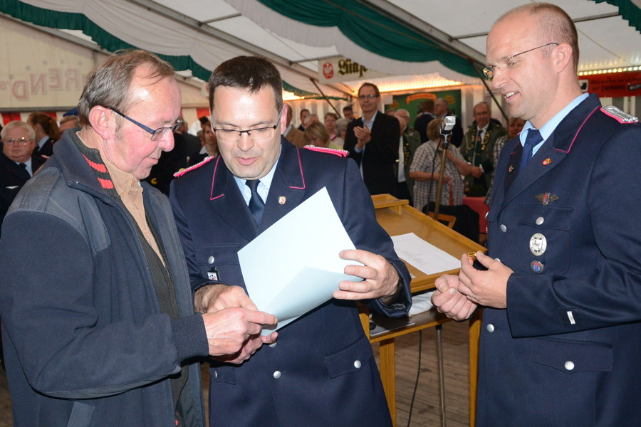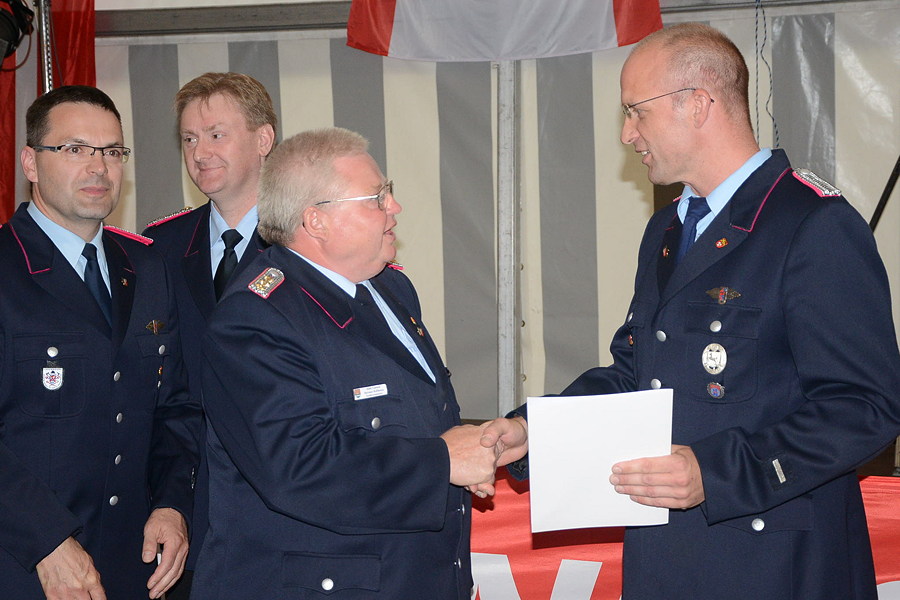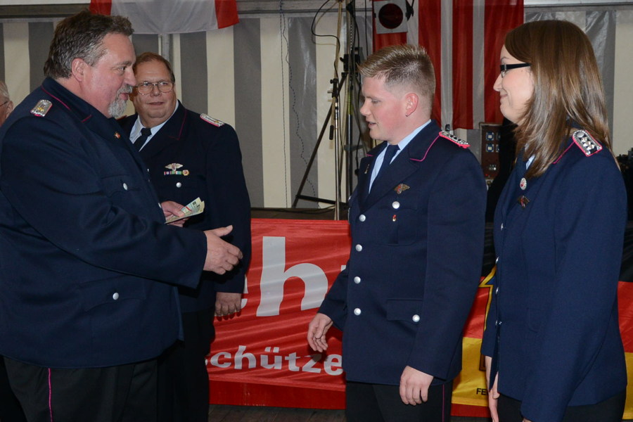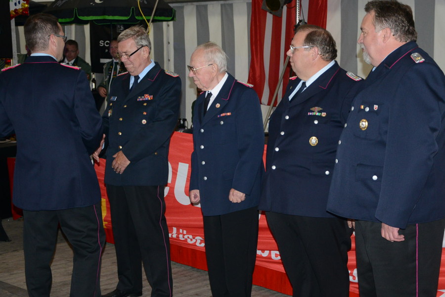 Für seine 50 Jahre lange Mitgliedschaft als Förderer der Wehr wurde Horst Schattschneider gewürdigt. Befördert wurden an diesem Abend zum 1. Hauptfeuerwehrmann Jens Peerdemann und zum Oberlöschmeister Marc Muntau.