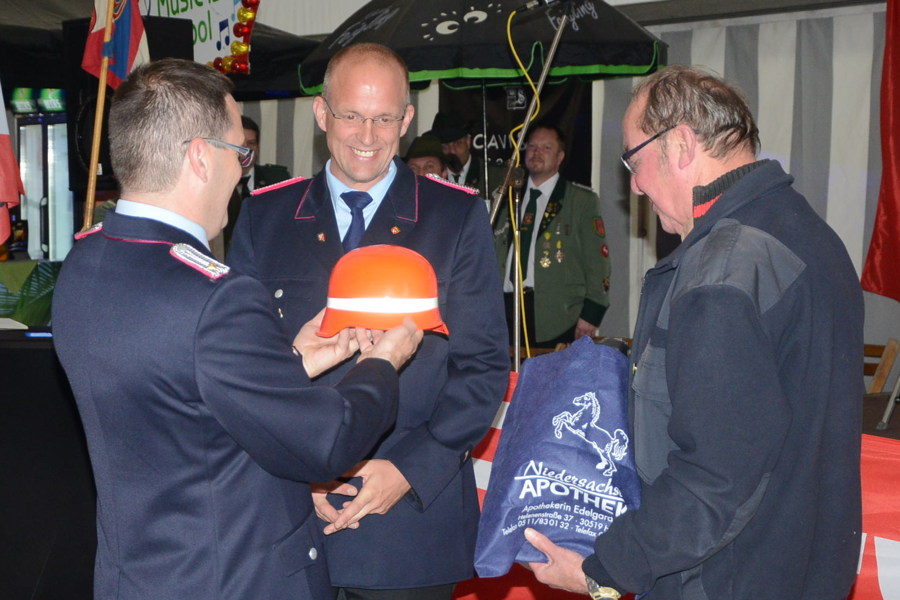 Eine besondere Wüdingung erhielt der 90 Jahre alte Wilhelm Schrader: er ist nicht allein 65 Jahre Mitglied der Rethener Feuerwehr, sondern war vielmehr bis 1974 der letzte Gemeindebrandmeister der ehemals selbstständigen Gemeinde Rethen/Leine. Erhard Duske wurde gestern ausgezeichnet, weil er sich seit ewigen Zeiten als "Heinzelmännchen", so Denis Schröder, im Gerätehaus an der Braunschweiger Straße selbstlos nützlich macht.