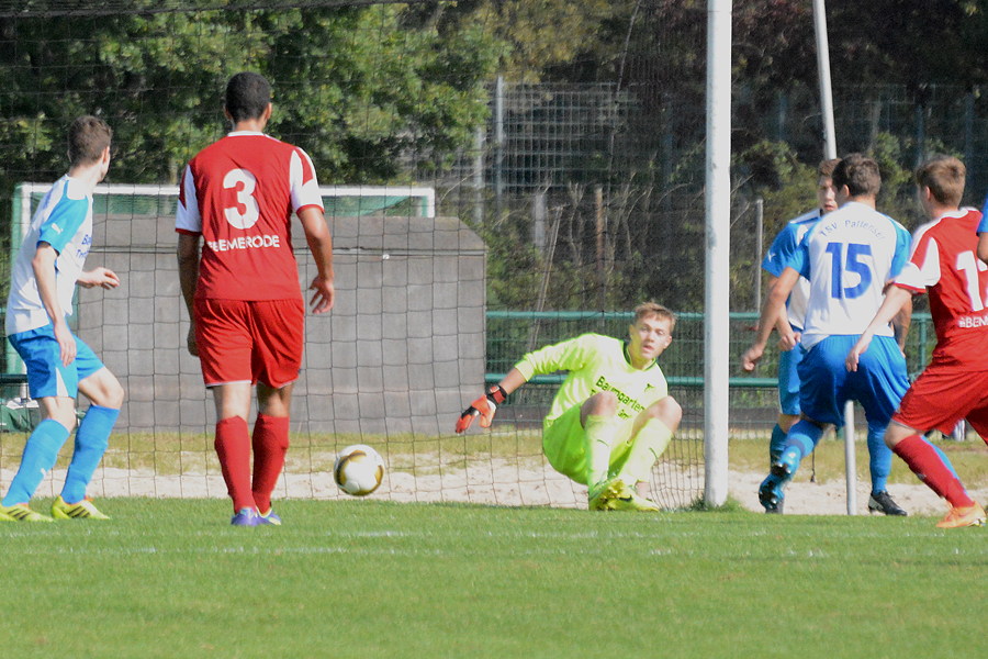 Bereits im Gegenzug bot sich dem TSV Pattensen eine gute Chance zur erneuten Führung, aber der gegnerische Torwart wehrte den Schuss glänzend ab. Glück für den Gast, dass der Schiedsrichter in der 78. Minute statt Strafstoß nur Freistoß für den TSV Bemerode gab – aber die Regelwidrigkeit war auf der Strafraumlinie, und die gehört zum Strafraum. Der Unparteiische hat das wohl nicht sehen können….