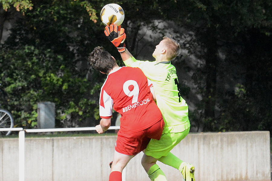 In der 55. Minute traf Nico Westphal etwas überraschend zum 0:1, und in der Folgezeit waren die TSVer aus Bemerode mit Nachdruck um den Ausgleich bemüht – der stellte sich allerdings erst in der 84. Spielminute ein: ein genauer Steilpass in den Lauf des Stürmers, der war frei mit dem Ball am Fuß durch und ließ sich diese Möglichkeit nicht entgehen.