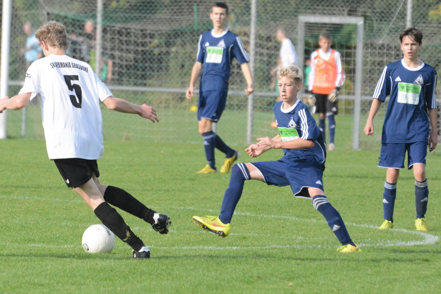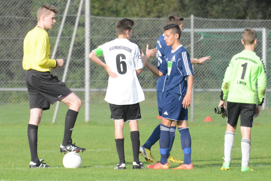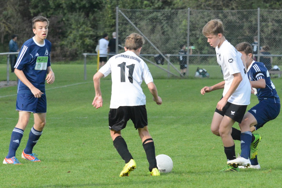 Die C-Junioren von Germania Grasdorf waren im Spiel der Landesliga gegen Arminia Hannover am Ende überfordert – auch wenn in der 2. Halbzeit nur noch ein Gegentor zugelassen wurde. Der Gast holte sich verdient die drei Punkte.. "Wir haben dem Gegner in der ersten Halbzeit drei Tore durch individuelle Fehler geschenkt, und wenn man Halbzeit 0:3 zurück liegt, ist das eine ganze schwere Sache." Das meint Marco Sontag, Trainer der C-Junioren von Germania Grasdorf. Die haben heute im Sportpark an der Ohestraße ihr Landesligaspiel gegen Arminia Hannover 0:4 (0:3) verloren.