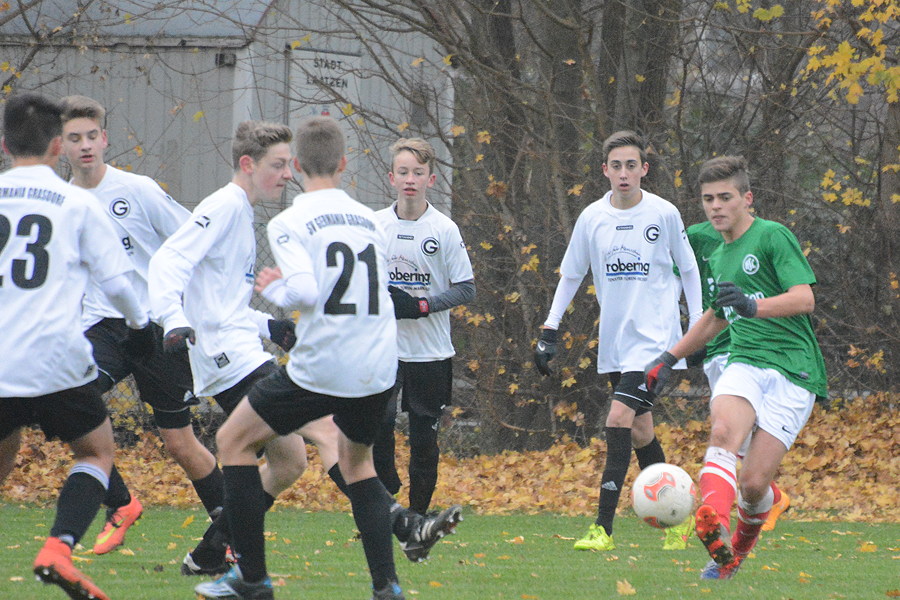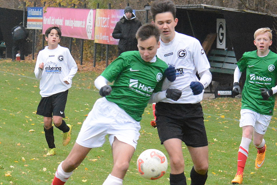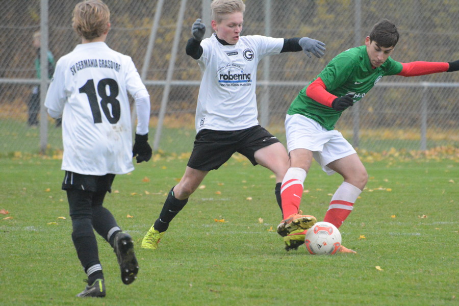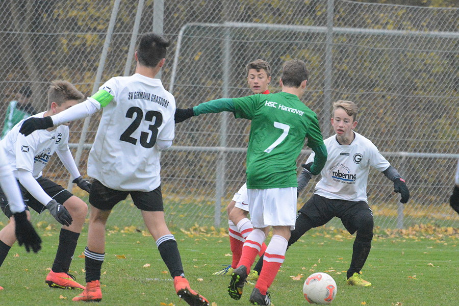 Zwar 0:5 (0:1) verloren, aber die C-Junioren von Germania Grasdorf haben im Landesligaspiel gegen den HSC Hannover ihre bisher beste Saisonleistung abgeliefert.. Bis zum 0:2 Mitte der 2. Halbzeit haben die Grasdorfer Germanen gegen den favorisierten HSC Hannover gut mitgehalten – was die Verteidigung des eigenen Tores betrifft. Eigene Tormöglichkeiten konnten sie sich gegen die körperlich überlegenden Landeshauptstädter nicht erspielen. Nach dem 0:2 bracht der Widerstand zwar nicht gänzlich zusammen, aber mit nachlassenden Kräften war es nicht möglich, die weiteren drei Gegentore zu verhindern. Damit hat Germania Grasdorf alle bisherigen Punktspiele des Spieljahres 2014/2015 verloren und belegt nach wie vor den letzten Tabellenplatz.