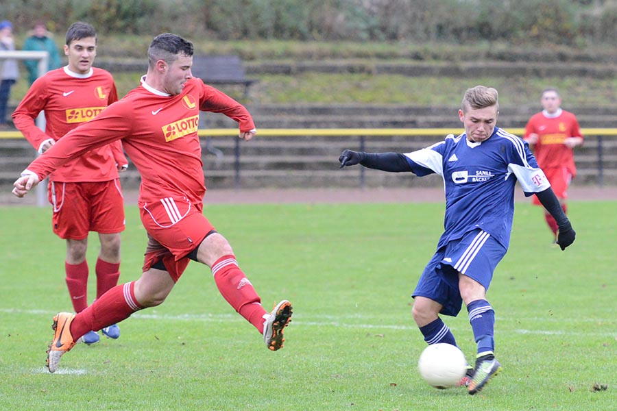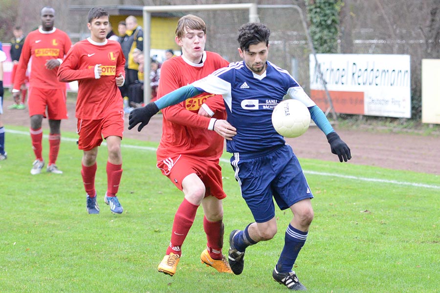 Die Gäste aus Lehrte hatten im ersten Durchgang mehr Ballbesitz, doch auch sie schafften es nicht, sich klare Torchancen herauszuspielen. Aus dem nichts stellten die Laatzener den Gleichstand wieder her. Nach einem Freistoß von der linken Seite landete das Leder vor dem Tor, wurde abgewehrt und landete Raphael Budny vor den Füßen, der den Ball mit einem strammen Schuss oben rechts ins Tor schoss (36.). Doch die Euphorie bei den Laatzener über den Ausgleich währte nicht lange. Nur zwei Minuten später rächten sich die Unzulässigkeiten der Laatzener, die sich im Passspiel viele Fehler erlaubten. Ein Rückpass wurde von dem Lehrter Fikret Kümet erlaufen, der bis zum Strafraum gelangte, in die Mitte zu Ruslan Mechonzew legte, der mit links zum 1:2 einschoss.