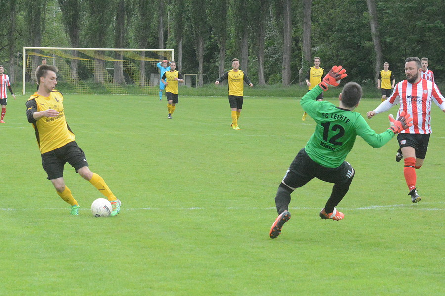 Die SpVg Laatzen hat in der Staffel 1 gegen den FC Lehrte II heute ein Torfestival gefeiert. 9:0 siegte der Tabellenletzte gegen einen sehr schwachen Gegner. Schon in der 3. Minute eröffnete Benjamin Prosenbauer den Torreigen, nur fünf Minuten später erzielte er auch das 2:0. Mit dem Doppelschlag in der 19. Minute durch David Kahl und 22. Minute durch Prosenbauer war die Moral der Gäste gänzlich gebrochen. In der 31. Minute erzielte Prosenbauer mit seinem vierten Treffer das 5:0. Nach der Halbzeitpause schraubten Steven Kahl (64.), Tobias Fischer (72.), nochmals David Kahl (80.) und Martin Adamczewski (89.) das Ergebnis auf 9:0. "Wir haben von Beginn an Druck gemacht und auch nach den frühen Toren nicht nachgelassen. Das war insgesamt eine tolle Leistung und ein Bilderbuch-Ergebnis für uns", sagte Co-Trainer Nils Noormann nach dem Spiel. Leider hat der Kantersieg an der Tabellensituation nichts geändert, da Friesen Hänigsen gegen den Tabellenletzten SSV Kirchhorst gewonnen hat. Somit hat die SpVg Laatzen weiterhin zwei Punkte Rückstand auf einen Nichtabstiegsplatz.