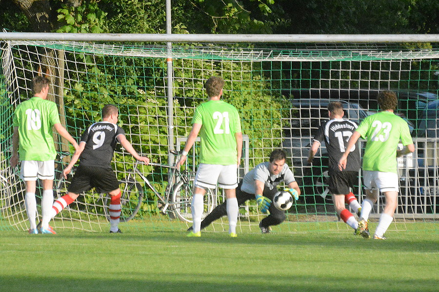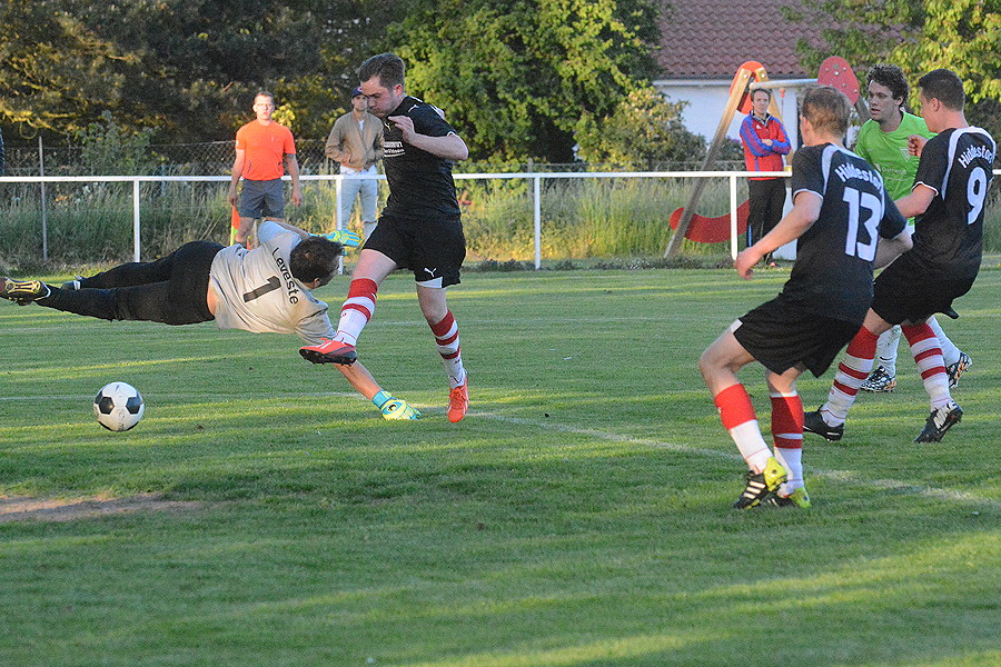 Das ist beinahe unfassbar: Der Tabellenvorletzte der Kreisliga 3, Eintracht Hiddestorf, hat heute Abend auf heimischem Gelände den hoch favorisierten Tabellendritten Jahn Leveste 2:0 (0:0) besiegt, verlässt damit wieder die Abstiegsplätze.. Nach der torlosen 1. Halbzeit – dem Gast bot sich eine gute Einschussmöglichkeit, aber der Ball flog am langen Pfosten vorbei ins Toraus – setzte der aufopfernd kämpfende Abstiegskandidat aus Hiddestorf die Akzente: 2:0-Führung innerhalb weniger Minuten. Beim 1:0 (55.) stand der Torwart der Levester Pate, er ließ den 30-Meter-Freistoß von Marco Maas aus den Händen gleiten, Robin Jäger setzte nach und drückte den Ball aus wenigen Metern über die Torlinie. Beim 2:0 (61.) setzte Serdal Basci den an Stefan Gabor verursachten Strafstoß unhaltbar ins Netz – allerdings reklamierten die Levester vor dem Foulspiel eine Abseitsposition des Hiddestorfers, der Linienrichter zeigte aber keine Reaktion. Überhaupt waren die Gäste mit der Schiedsrichterleistung nicht einverstanden. "Es war eine Superleistung von uns, wir haben verdient gewonnen", meint Eintracht-Trainer Heiko Schöndube.