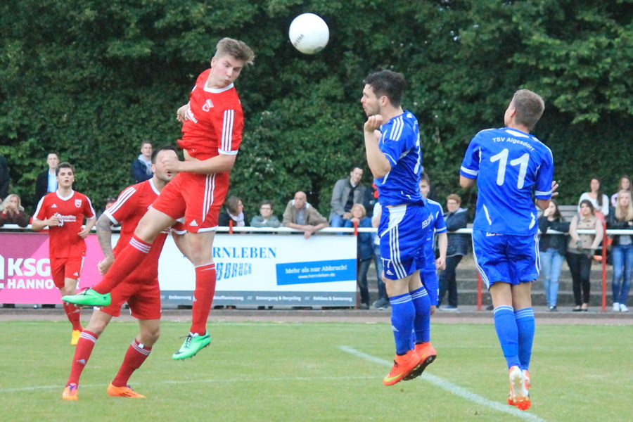 Vor etwa 500 Zuschauern – gut und gerne 200 brachte der TSV Algesdorf mit – agierten die Hemminger von Beginn an hochkonzentriert. Beiden Mannschaften sah man an, dass es in diesem Spiel um viel ging. Die Hausherren hatten von Beginn an mehr Ballbesitz, die Gäste beschränkten sich auf Konter durch die pfeilschnellen Stürmer. Da der Gastgeber jedoch in der Abwehr sicher stand, blieben Chancen für die Gäste in der 1. Halbzeit Mangelware.