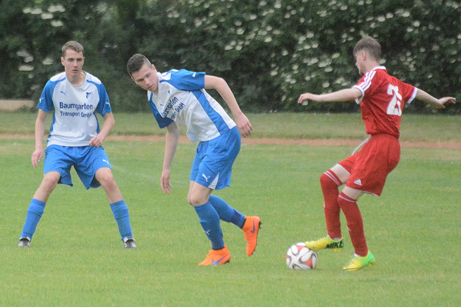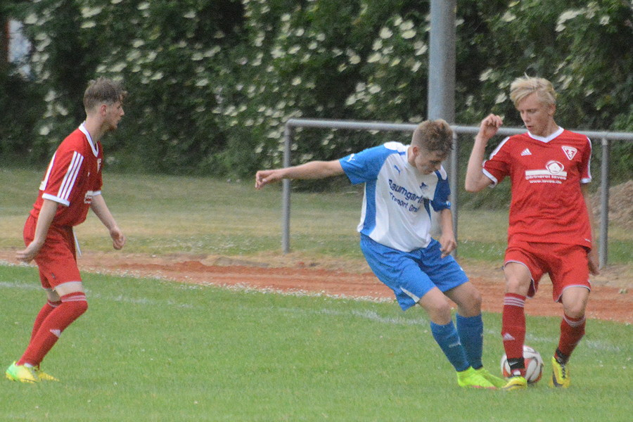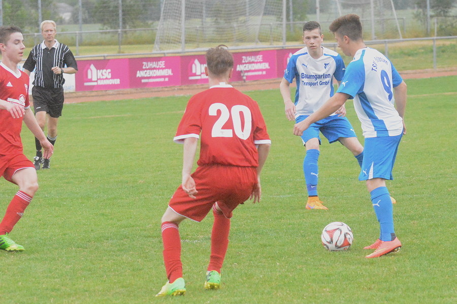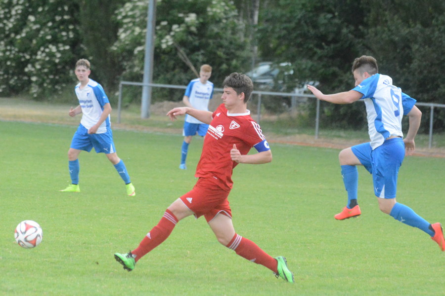 Im Spiel der Landesliga kamen die B-Junioren von Germania Grasdorf bei Absteiger JSG Weye zum 2:1-Sieg. Nach dem 0:1 (4.) durch Sezer Kurtyilmaz trafen die Gastgeber in der 27. Minute, Clemens Stamm schoss in der 38. Minute das 1:2.