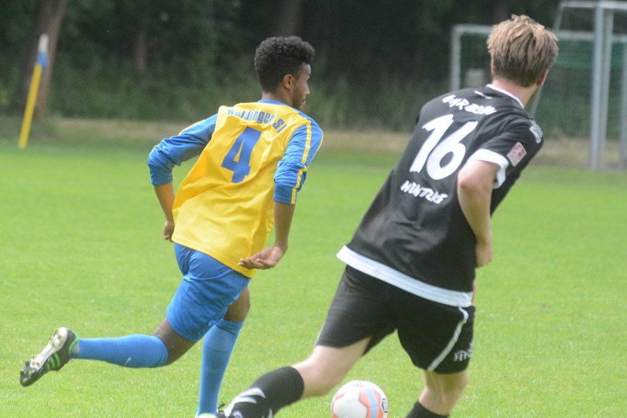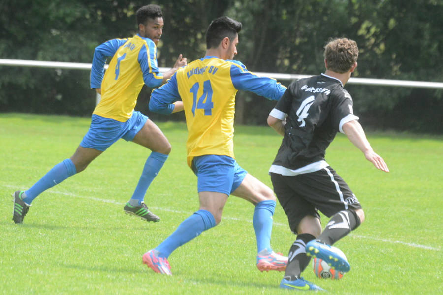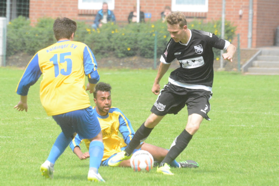 Damit ist Marco Greve,der neue Trainer des Fußball-Bezirksligisten Koldinger SV, hoch zufrieden. Die 2:6 (1:3)-Heimniederlage heute Nachmittag hat ihn teilweise sogar beeindruckt.. Das erste Tor der neuen Saison 2015/2016 geht auf das Konto von Zugang Hassan Jaber, er traft nach 17 Spielminuten zum 1:0 für den Bezirksligisten aus Koldingen. Die TSVer ließen sich dadurch jedoch nicht schocken, lagen beim Pausenpfiff 3:1 vorn.