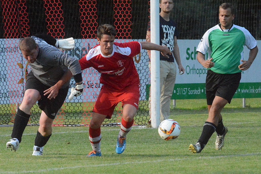 Marvin Dürr markierte mit einem 45 Meter-Solo das 1:0. Nach dem Wiederanstoß patzte Hottelns Hintermannschaft mit einem Fehlpass zu Torwart Markus Dey. Kevin Goldammer sprintete dazwischen und erhöhte schnell auf 2:0. Der FC Ruthe überzeugte mit schnellem Spiel, während der Gegner kaum noch aus der eigenen Hälfte herauskam. Lediglich bei der Chancenauswertung taten sich die Ruther Stürmer lange schwer. Marvin Dürr (12., 20.), Kevin Goldammer (27.) und Sebastian Tiemann (35.) scheiterten am Aluminium oder an Hottelns Schlussmann Markus Dey, der regelrecht warmgeschossen wurde.