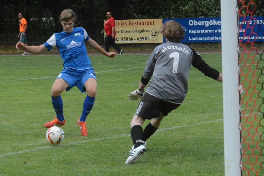 FSV-Stürmer Iwan Celik sorgte mit seinem Treffer bereits nach rekordverdächtigen 12 Sekunden für den Startschuss einer einseitigen und unspektakulären Partie, traf zum 0:1. Celik packte nur drei Minuten später gleich noch einen drauf, staubte zum 0.2 ab. TV Deutsche Eiche Hotteln hatte dem nichts entgegenzusetzen. Es war deutlich zu erkennen, wie dieses Spiel ausgehen würde. Fraglich blieb nur der Zeitpunkt, wann die Tore fallen sollten.