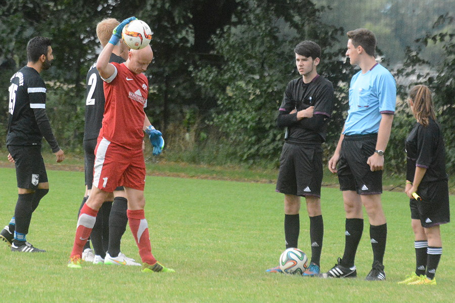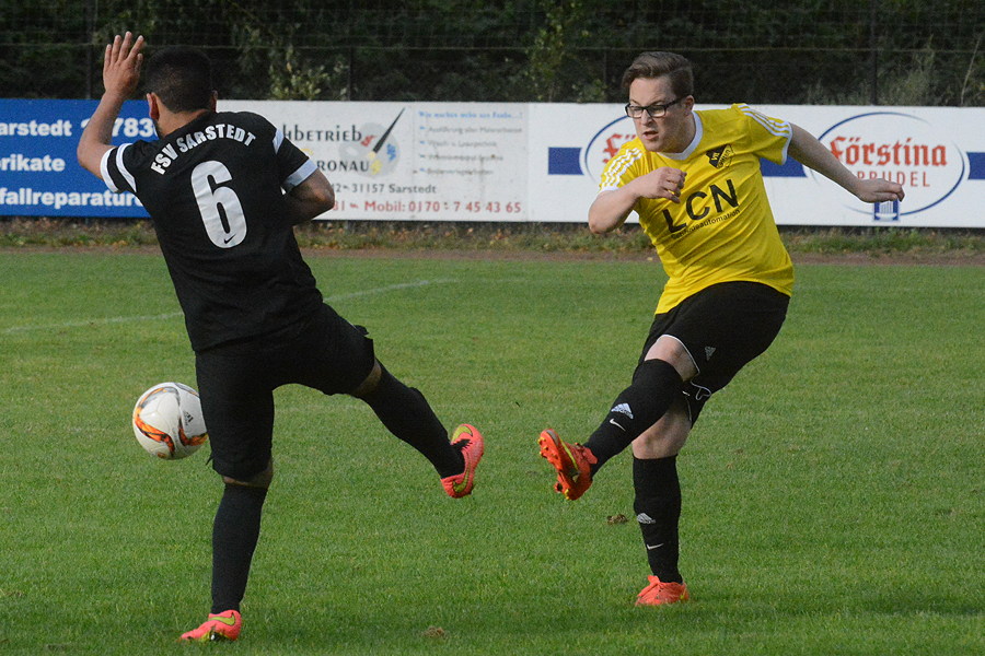 Über Arbeit nicht beklagen konnte sich sein gegenüber Andre Schwarz. Der spielte eine starke Partie und entschärfte zahlreiche Großchancen der FSV unter anderem von Dorian Müller (29.) und Tilo Neumann (33.). Ansonsten blieb auch die FSV Sarstedt nicht so souverän wie zuletzt. Es holperte oft auch hier. Mit dem Pausenpfiff gelang Jannik Nass mit einem direkt verwandelten Freistoß der 3:0-Halbzeitstand.