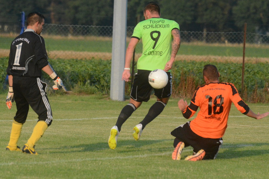 Mit dem ungefährdeten 3:1 (1:0)-Heimsieg über den Klassengefährten Concordia Hildesheim hat sich Bezirksligist TuSpo Schliekum für die 3. Pokalrunde qualifiziert. Die Gastgeber waren vom ersten Pfiff des Schiedsrichters an überlegen und kamen auch früh zu klaren Torchancen, aber Joy Ledonne und Imad Saadun trafen jeweils nur den Torpfosten, Erst in der 36. Minute gelang Spielertrainer Imad Saadun das Führungstor, fünf Minuten nach der Halbzeit erhöhte Saadun auf 2:0 und Selcuk Cetin traf per Strafstoß zum 3:0 (63.). Die Domstädter kamen lediglich durch Maxililian Warko zum Anschlusstor (78.).