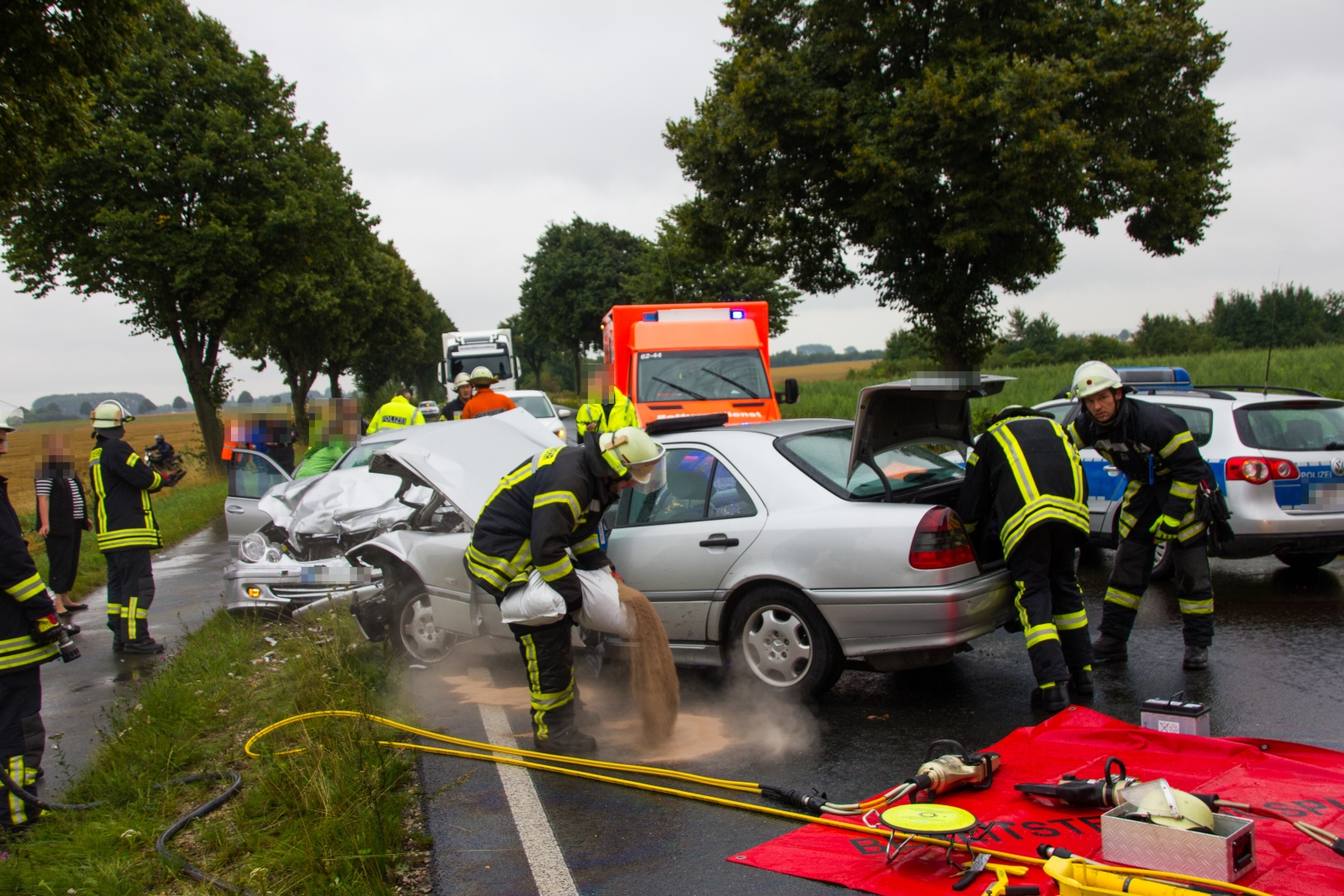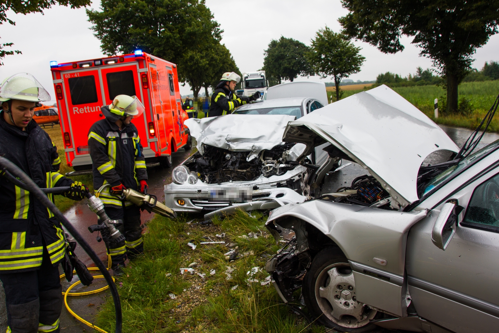 Der Fahrer eines Mercedes war ersten Angaben zufolge eingeklemmt. Die Feuerwehr bereitete umgehend alles für eine Rettung mit technischem Gerät vor. Jedoch kam jede Hilfe zu spät, der Fahrer war bereits tot. Drei weitere Personen wurden verletzt. Eine verletzte Person wurde mit einem Rettungshubschrauber in ein Krankenhaus geflogen und die anderen beiden Verletzten mit dem Rettungswagen abtransportiert. Die B3 wurde voll gesperrt.
