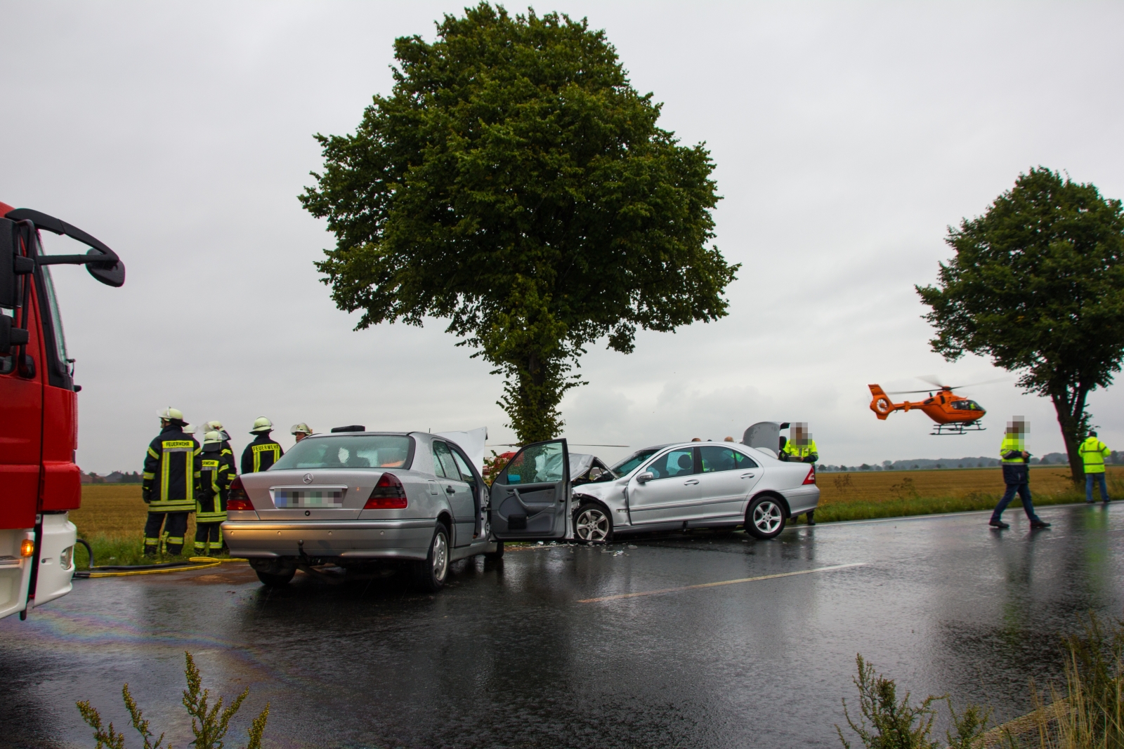 Die Feuerwehr wurde heute Vormittag zu einem schweren Verkehrsunfall auf der B3 hinter Arnum Richtung Pattensen alarmiert. Bei der Kollision von zwei PKWs verstarb eine Person und drei weitere Personen wurden verletzt. . Um 11.23 Uhr wurden die Freiwilligen Feuerwehren Arnum und Hemmingen-Westerfeld alarmiert. Beim Eintreffen der Einsatzkräfte bot sich folgendes Bild: Zwei PKWs der Marke Mercedes standen sich etwa 1,5 Meter frontal im rechten Winkel gegenüber. Bei beiden Fahrzeugen war die Front stark zerstört.