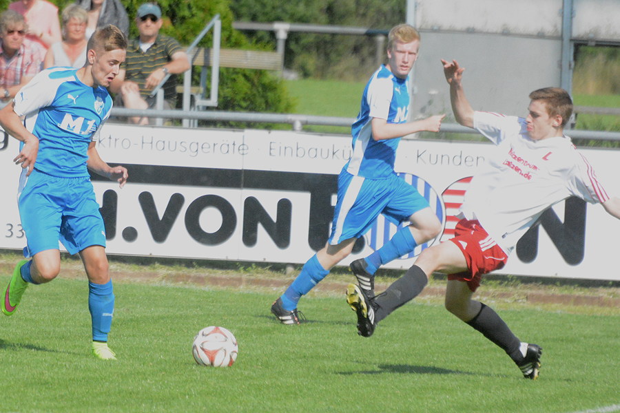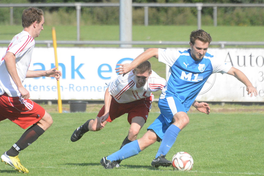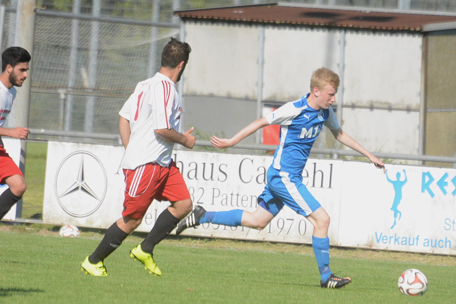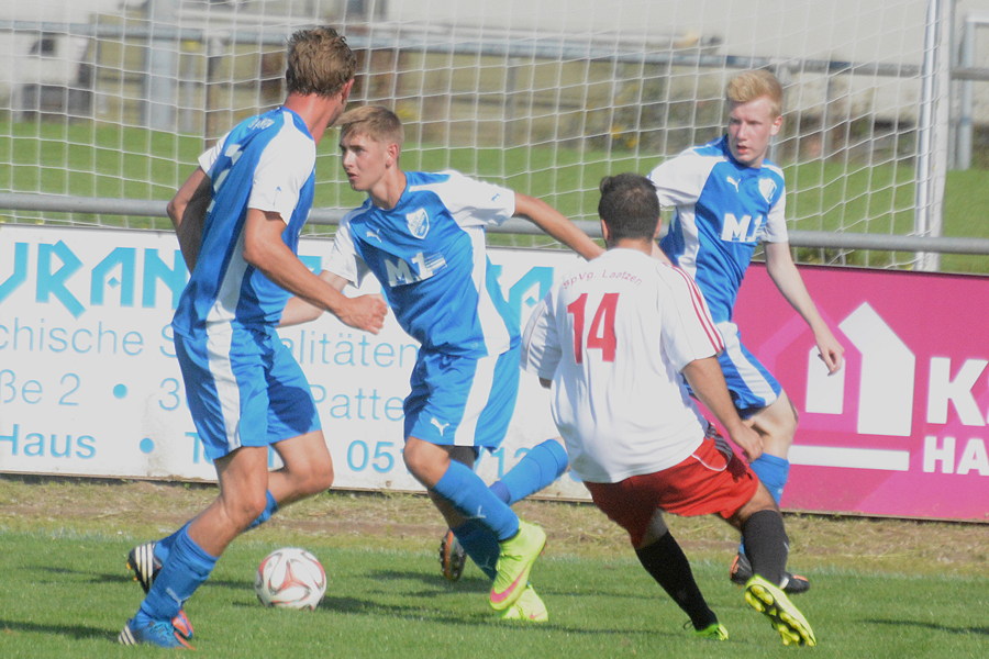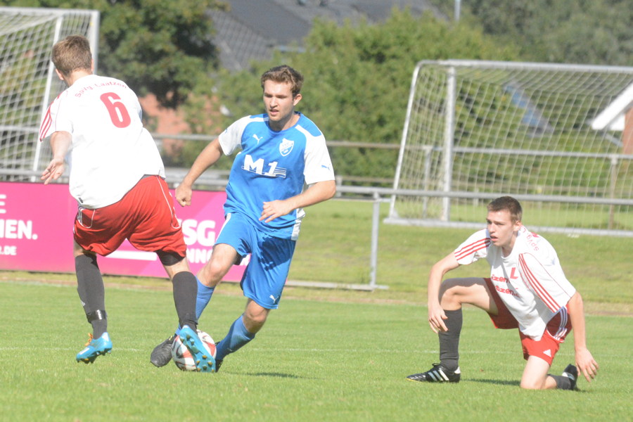 Im Nachbarschaftsderby zwischen dem TSV Pattensen II und der SpVg Laatzen sind die Gastgeber ihrer Favoritenrolle gerecht geworden und bezwangen die Gäste aus Laatzen am Ende deutlich 4:1. In dem insgesamt eher mäßigen Kreisligaspiel kontrollierte der TSV von Beginn an das Spielgeschehen. Mit dem ersten Schuss auf das Laatzener Tor gelang Deik Wehner gleich das 1:0. Er traf den Ball in der 7. Minute aus 18 Metern perfekt, sein Schuss schlug im oberen linken Toreck unhaltbar ein. Die Gäste bemühten sich und versuchten ihr Glück vor allem mit langen Bällen – mit Erfolg. In der 30. Minute schlug Nils Noormann einen langen Pass auf Torjäger Benjamin Prosenbauer, der mit seiner Schnelligkeit die Pattenser Verteidigung abhängte und zum 1:1 abschloss. Noch vor dem Halbzeitpfiff hätte Wehner die erneute Führung erzielen können, doch sein Kopfball in der 43. Minute traf nur die Torlatte. Im zweiten Durchgang wurde die Überlegenheit der Gastgeber immer größer, zudem demonstrierte TSV-Stürmer Joel Mertz seine individuelle Klasse. In der 48. Minute vollendete er mit einem Schuss in den oberen rechten Torwinkel zum 2:1, in der 65. Minute erhöhte Mertz mit einem Flachschuss ins rechte Eck aus 17 Metern zum 3:1. Und in der 76. Minute sorgte er nach einem Sololauf für die Vorentscheidung zum 4:1. "Aufgrund der guten zweiten Halbzeit ist der Sieg verdient. Mit neun Punkten aus drei Spielen ist das ein perfekter Saisonstart", freute sich Pattensens Co-Trainer Oliver Bock nach Spielende. Auch für den neuen Laatzener Trainer Dirk Rodewald geht der Sieg für den TSV in Ordnung: "In der ersten Halbzeit haben wir gut dagegen gehalten und sehr variabel gespielt. In der zweiten Hälfte hatten wir nicht mehr die Kraft, um das Tempo mitzugehen. Deshalb ist der Sieg für die Pattenser verdient."