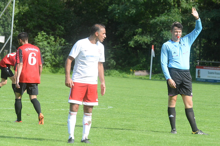 Weshalb Schiedsrichter Lutz Giesecke das Spiel gut und gerne fünf Minuten zu früh abpfiff, kann keiner der Beteiligten nachvollziehen und es sorgte für Gesprächsstoff. "Dafür zeige ich kein Verständnis", sagte Jörg Möhle, und Zuschauern skandierten: "Der hat wohl bei der Hitze keine Lust mehr." Von allen Hinweisen ließ sich der Unparteiische nicht beeindrucken, lächeld verließ er mit seinen Assistenten das Spielfeld…..