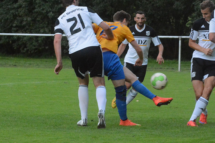 Das war 45 Minuten lang eine Bezirksliga-Vorstellung vom Feinsten: Der Koldinger SV, Tabellenführer der Staffel 3, deklassierte den Gast aus Springe. Erst nach dem vierten Tor in der 55. Minute schalteten die Gelb-Blauen merklich zurück.. Das war heute Abend ein Auftakt nach Maß: nach 30 Spielminuten führten die Gastgeber bereits 3:0, und es tut der Leistung des Koldinger SV keinen Abbruch, dass dem zweiten Treffer eine klare Abseitsposition vorausgegangen war – vielleicht ärgerlich für den FC Springe, mehr aber auch nicht.