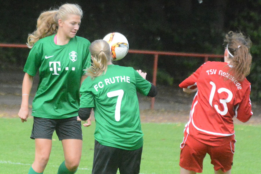 Mit dem Ergebniss ist Gerhard Prystawek, Trainer beim FC Ruthe, nicht unzufrieden, mit der gezeigten Leistung allerdings schon ein wenig. "Das ein zerfahrenes Spiel, und wir haben heute nicht gut gespielt", sagte er nach der dem 4:2-Heimsieg gegen den TSV Nettelrede. Das 1:0 (19.) legte Melanie Wehrsporn vor, und nach dem 1:1 (31.) traf Tarja Kristin Fuhrenberg gleich nach dem Seitenwechsel zum 2:1 (47.). Doch die Freunde hielt nur zwei Minuten, denn der Gegner schoss das 2:2 (49.). Erst in der 79. Spielminute traf Tarja Kristin Fuhrenberg zum 3:2 und in der Schlussminute gelang ihr auch noch der erlösende Siegtreffer zum 4:2-Endstand. Nach diesem Spiel belegt der FC Ruthe den 2. Tabellenplatz.