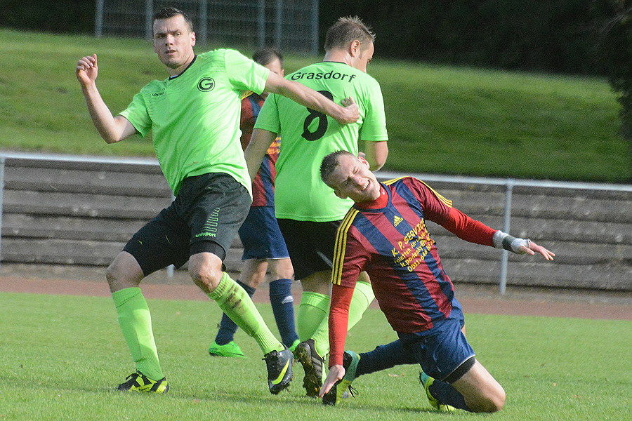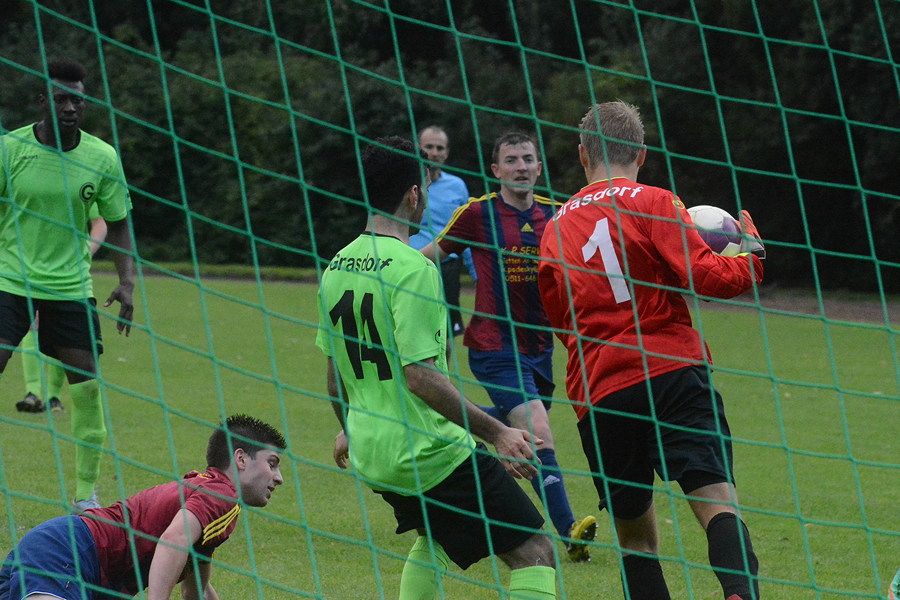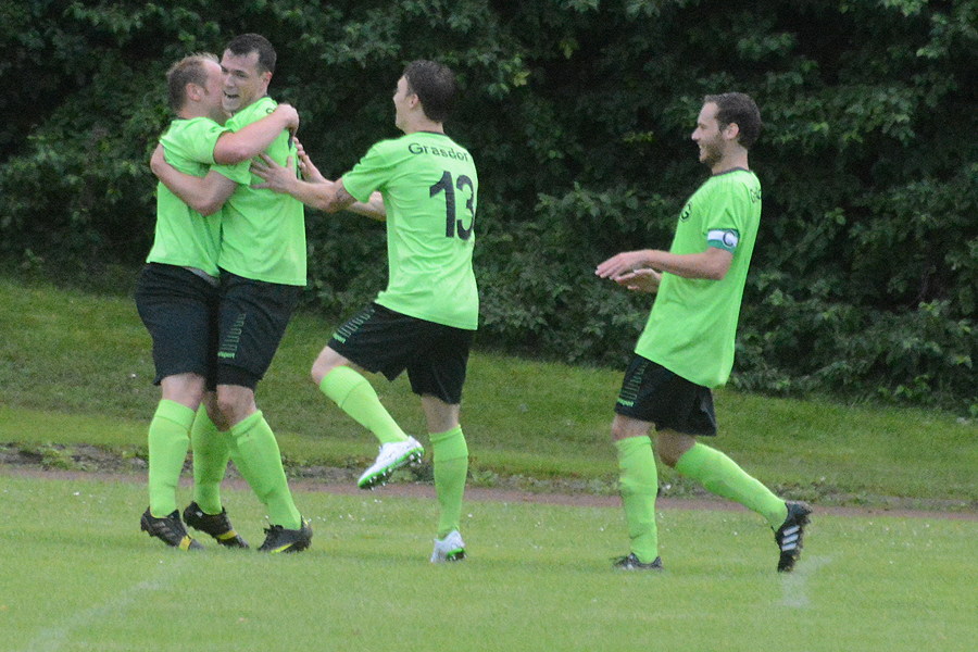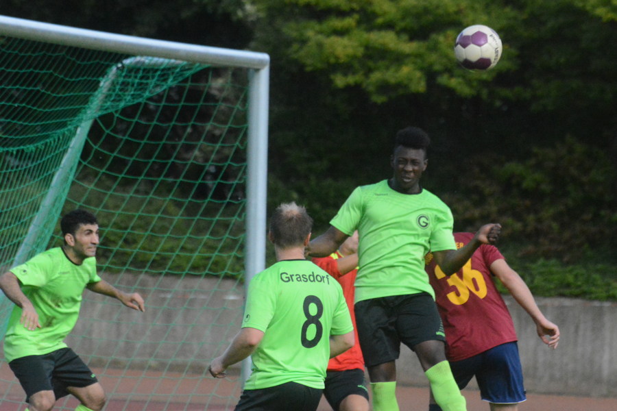 Große Erleichterung herrscht beim SV Germania Grasdorf nach dem ersten Saisonsieg. 3:2 siegte das Team um die Trainer Jürgen Willmann und Andreas Sinzenich beim Mühlenberger SV. "Da sind mehrere dicke Steine von der ganzen Mannschaft abgefallen. Wir sind sehr glücklich, dass wir den ersten Dreier eingefahren haben", sagte Willmann nach der Partie. Die Germanen erwischten einen perfekten Start, denn nach Toren von Marco Cyrys (2.) und Stavros Paraskevopoulos (6.) führten die Gäste früh 2:0. Schon nach elf Minuten kamen die Gastgeber auf 2:1 heran, doch Carsten Folprecht stellte mit seinem Treffer in der 58. Minute die Weichen auf Sieg. In der letzten Minute bekam der Mühlenberger SV einen laut Willmann strittigen Elfmeter zugesprochen. Germania-Torhüter konnte den Elfmeter und den ersten Nachschuss noch sensationell abwehren, im zweiten Nachschuss war er aber machtlos. Zudem beendeten die Germanen das Spiel mit zehn Spielern, da der eingewechselte Clirim Ferizi in der 90. Minute wegen Schiedsrichterbeleidigung die rote Karte sah. "Insgesamt war es ein hochverdienter Sieg. Wir haben nicht anders gespielt, als in den vergangenen Partie. Der Unterschied war, dass wir uns endlich für den hohen Aufwand belohnt haben", sagte Willmann.