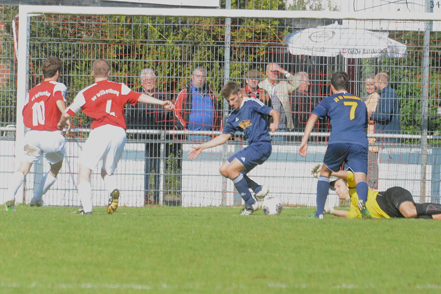 Mit einem leistungsgerechten 2:2 (1:1) endete die Begegnung zwischen dem Tabellendritten SV Wilkenburg und Ronnenberg 05. Beide Mannschaften schenkten sich nichts, und so entwickelte sich eine kampfbetonte und spannende Partie, in der die Gäste in der 28. Minute durch Yannik Simon aus nach Ansicht der Gastgeber abseitsverdächtiger Position 0:1 in Führung gingen. Danach übernahmen die Hausherren zunehmend das Kommando, und Maik Zierold erzielte auf Zuspiel von Jannik Höpner in der 40. Minute den 1:1-Pausenstand. Auch nach dem Wechsel boten sich beiden Mannschaften weitere gute Torchancen, von denen eine durch einen von Henning Lüders vorbei an Freund und Feind direkt verwandelten Freistoß den Weg zum 1:2 ins Wilkenburger Tor fand. Doch die Gastgeber steckten nicht auf und der eingewechselte Florian Janzhoff traf in der Schlussphase zum verdienten 2:2-Ausgleichstreffer. Pech hatten die Platzherren, dass ein Treffer von Marouane Sabir kurz zuvor wegen vermeintlicher Abseitsstellung keine Anerkennung fand. "Mit dem Unentschieden gegen ein Spitzenteam der Liga können wir gut leben. Vor allem haben wir uns heute wieder einmal für unseren unermüdlichen Einsatz auf schwerem Boden mit dem späten Ausgleichstreffer belohnt", freute sich Pressesprecher Martin Volkwein über das "last-minute-Remis".