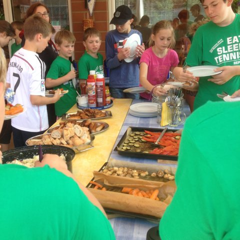 Den vielen Helfern, die dieses Camp möglich gemacht haben, gilt ein besonderer Dank und da ein sportlicher Trainingserfolg auch immer mit einer guten und gesunden Ernährung einher geht, gilt vor allem der Köchin, Antje Baumann, ein besonderer Dank. Sogar weniger schöne Arbeiten, die leider auch zum Tennisspielen und zu solch einem Event gehören, wie zum Beispiel Plätze abziehen, Material wegräumen, Tische abwischen, fegen etc wurden hervorragend gemeistert. Die Tennisabteilung des TSV Rethen freut sich auf die nächsten Camps im Sommer 2016.