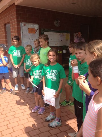Alle Kinder waren hoch motiviert und konnten nach jeweils fünf Tagen im Abschlussturnier ihre erworbenen Kenntnisse ein und umsetzen. Trotz der großen Altersunterschiede wurde eifrig miteinander kommuniziert und gelacht. Im ersten Camp musste eine Regenpause eingelegt werden, was der Stimmung aber nicht geschadet hat. Es entstanden handgemalte Bilder, die jetzt im Tennisheim zu sehen sind.