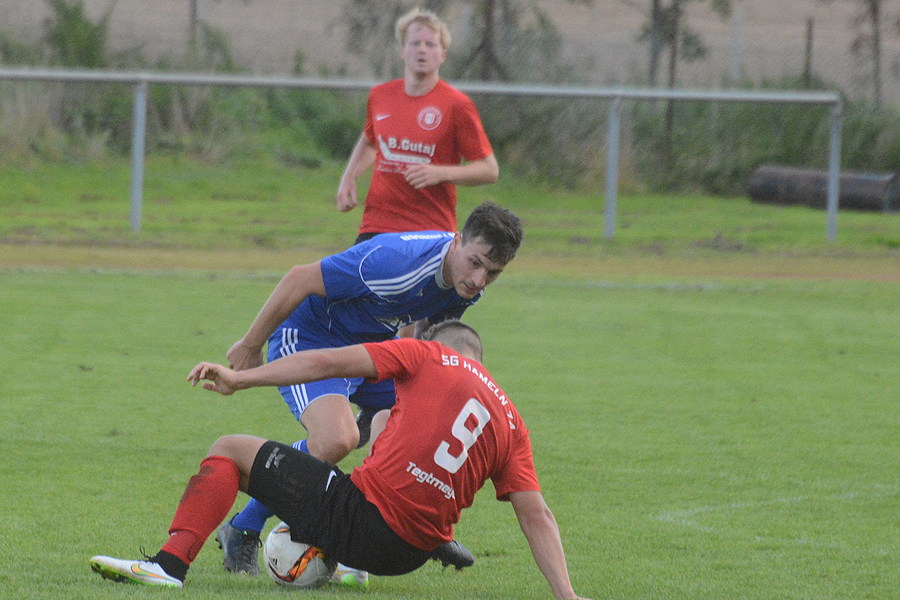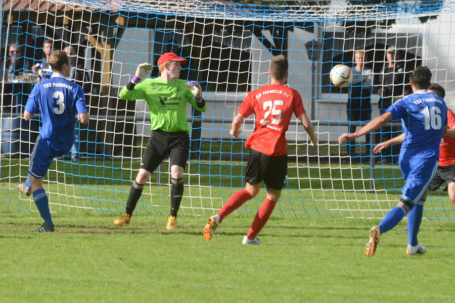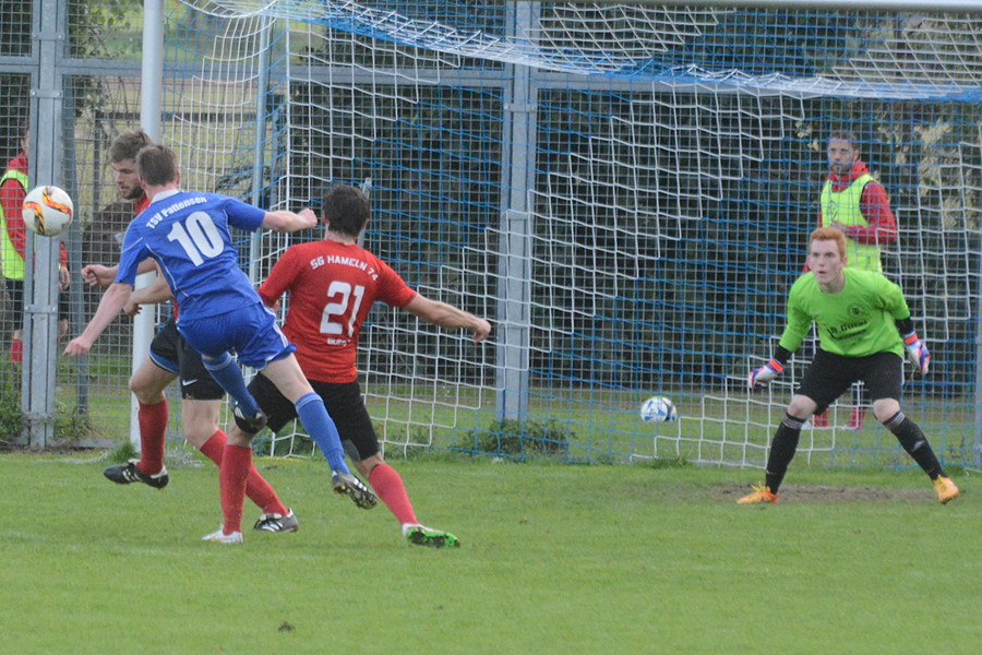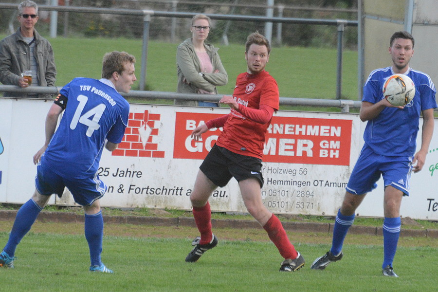 Der TSV Pattensen eilt in der Landesliga von Sieg zu Sieg. Heute bezwang das Team die SG Hameln 74 4:2. In der ersten Hälfte sahen die etwa 200 Zuschauer eine starkes Spiel der Gastgeber, die durch Georg Schwarz in der 16. Minute in Führung gingen. Auch das 2:0 in der 24. Minute ging auf das Konto von Schwarz. Nach einem Handspiel von Simon Hinske im eigenen Strafraum pfiff der Schiedsrichter Elfmeter für die Gäste. Den Strafstoß verwandelte Egcon Musliji in der 45. Minute zum 2:1. Nach dem 2:2 in der 53. Minute drohte das Spiel zu kippen, doch die Blau-Weißen schafften es, das Tempo noch einmal zu erhöhen. Die Konsequenz war das 3:2 durch Linus Schnack in der 57. Minute. Das 4:2 von Simon Hinske in der 73. Minute war dann die Vorentscheidung. "Es war ein sehr intensives Spiel gegen einen spielstarken Gegner, das wir am Ende aber hochverdient gewonnen haben. Ich muss der Mannschaft heute ein Riesenkompliment machen, weil sie nach dem 2:2 Charakter gezeigt hat und somit den Sieg erzwungen hat", sagte TSV-Trainer Hanno Kock nach der Partie.