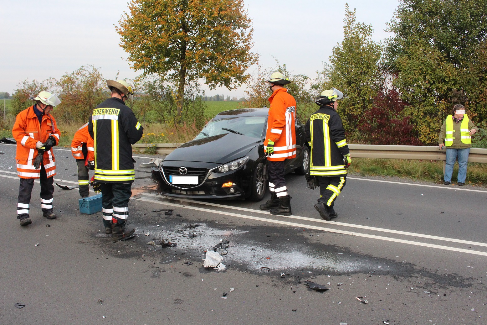 Der Ford Transit des Paketdienstes wie auch der Toyota wurden bei dem Zusammenstoß erheblich beschädigt. Beide Fahrzeuge kollidierten auf der Beifahrerseite, sodass beide Insassen nur leicht verletzt wurden. Die Ortsfeuerwehr Pattensen beschränkte sich auf das Abklemmen der Batterien an den Unfallfahrzeugen und das Zusammenkehren der Fahrzeugtrümmer. Auslaufende Betriebsstoffe wurden mit Bindemittel abgestreut. Der Einsatz war gegen 18.30 Uhr beendet.