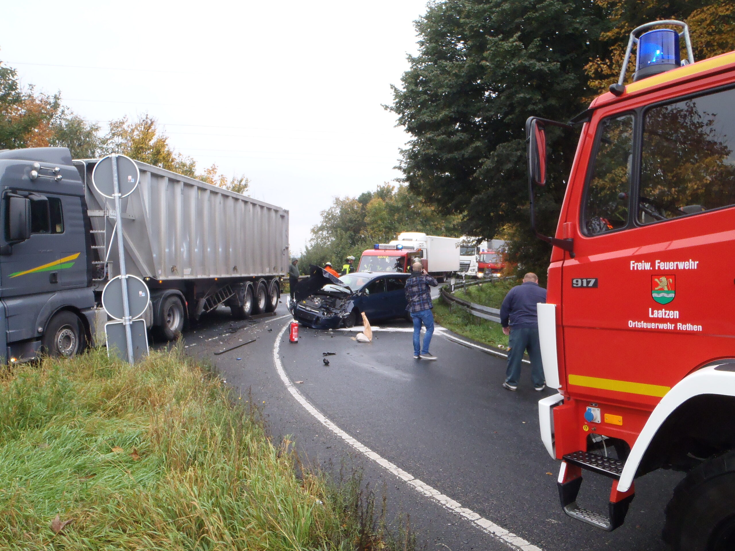 "Mein Lastwagen ist glücklicherweise leer und damit sehr leicht, sonst wäre der Personenwagen unter dem Auflieger stecken geblieben", sagte er den anrückenden Helfern noch vor Ort. Einsatzkräfte der Ortsfeuerwehr Rethen streuten ausgelaufene Betriebsstoffe ab und reinigten die Fahrbahn, damit wenigstens der Verkehr von der B6 Richtung Sehnde wieder fließen konnte. Der Personenwagen musste abgeschleppt werden. Den Sattelauflieger wollte der Fahrer in eine nahe Werkstatt bringen und dann nur mit der Zugmaschine weiterfahren.