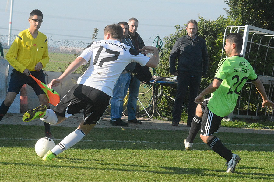 2:6-Heimniederlage gegen den FC Springe – Tuspo Schliekum bleibt im Tal der Tränen. Das war ein perfekter Beginn: nach nur drei Minuten erzielte Akin Kilicaslan das 1:0 für TuSpo Schliekum – aber es war nicht der Beginn eines wundervollen Spiels für die Gastgeber. Innerhalb von zwölf Spielminuten (18. bis 30.) schossen die FCer vier Tore und legten damit den Grundstein für ihren späteren Auswärtssieg. Dass Akin Kilicaslan gleich nach dem Seitenwechsel den zweiten Treffer der Schliekumer erzielte (46.), machte sicherlich Mut und Hoffnung, aber danach waren nur noch die FCer erfolgreich (67. und 88.). Heute kassierte der Verlierer drei Gegentore durch Ecken oder Freistoß. "Das geht so nicht", sagte der frustrierte Trainer Imad Saadun. Er selbst musste heute wegen einer Zerrung als Spieler passen. "Wir haben durch Standards drei Kopfballtore kassiert", zeigt er sich säuerlich. Der amtierende Vizemeister will und braucht zunächst in der Tabelle nicht mehr nach oben zu gucken, sondern nach unten. "Es droht der Fall auf den Relegationsplatz", hat Imad Saadun beim Blick auf die aktuelle Tabelle gesehen.