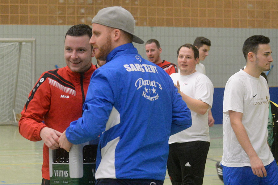Der Fußball-Kreisligist FSV Sarstedt war heute in der Sporthalle am Wellweg schon wieder Ausrichter eines Turnieres. Sonnabendabend ging es um das Rewe-Masters, heute standen sich Mannschaften aus dem Kreis gegenüber.. Zehn Mannschaften aufgeteilt in zwei Gruppen ermittelten die Halbfinalteilnehmer. Dabei standen sich TuSpo Schliekum II und der FC Ruthe gegenüber, die Schliekumer siegten 3:0. Im zweiten Semifinanspiel schlug der VfL Giften die 2. Vertretung von Gastgeber FSV Sarstedt 5:4. Im Spiel um Platz drei setzte sich FSV Sarstedt II gegen den FC Ruthe 6:4 nach Neunmeterschießen durch.
