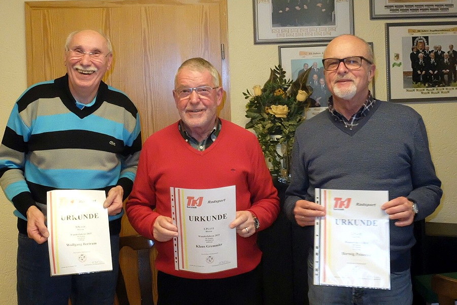 Materialwart Henning Drygas teilte mit, dass er sich um die Beschaffung neuer Trikots für die Radsportabteilung kümmern wird. Wanderfahrwart Wolfgang Bertram hob in seinem Bericht hervor, dass die Wanderfahrer erneut an die außerordentlichen Erfolge der Vorjahre anknüpfen und in der Saison 2015 wieder beachtliche Erfolge verzeichnen konnten (1. Platz bei den Wettbewerben auf Landes- und Bezirksebene sowie 2. Platz auf Kreisebene), wobei der Bezirkspokal zum 12. und der Landespokal zum 11. Mal in Folge gewonnen wurden.
